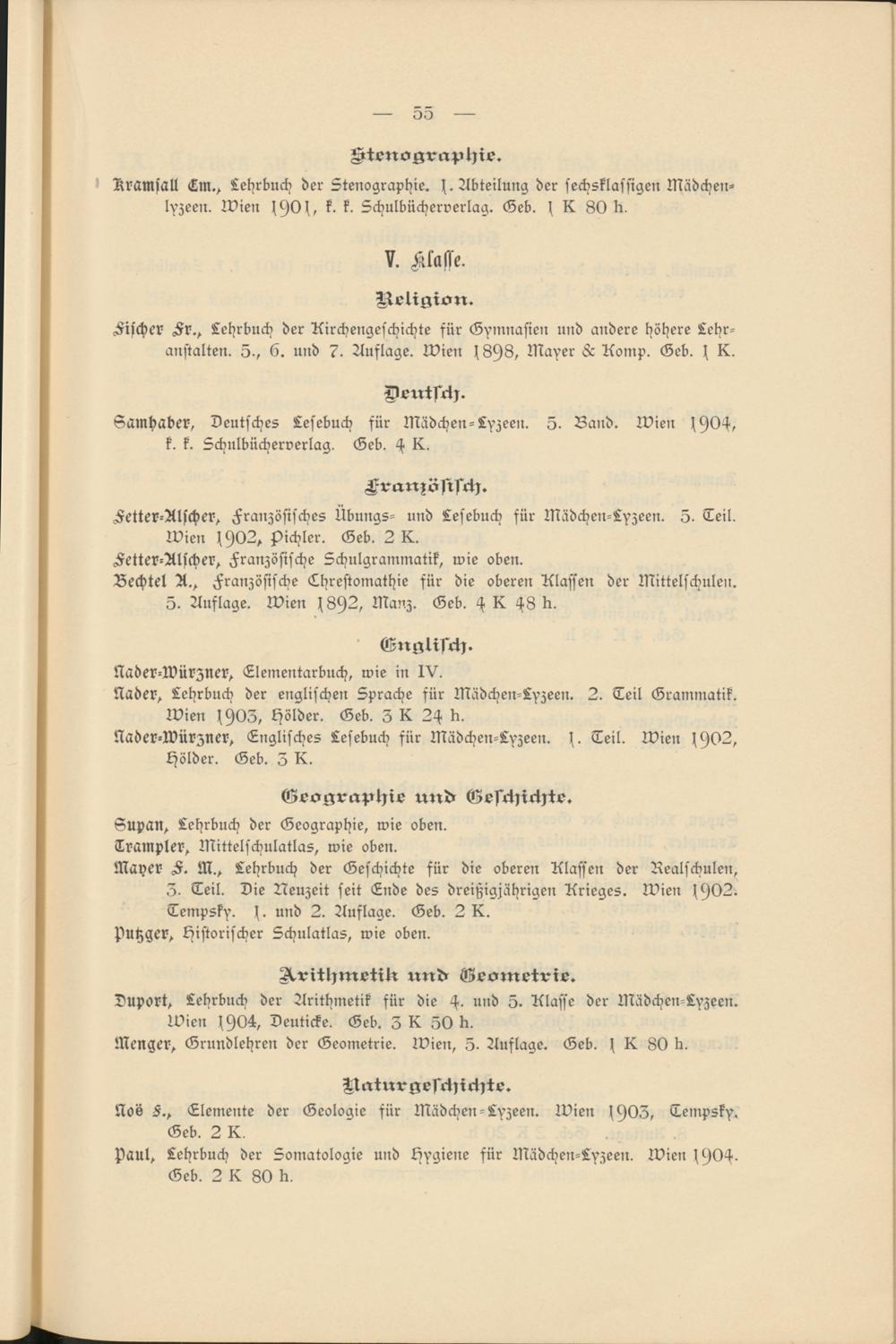 Rramsall Lm., Lehrbuch der Stenographie, h Abteilung der sechsklassigen Mädchen- lyzeen. Wien jhOj, k. Schulbücherverlag. Geb. j K 80 lr.