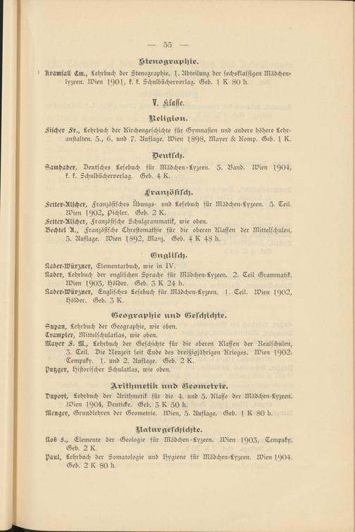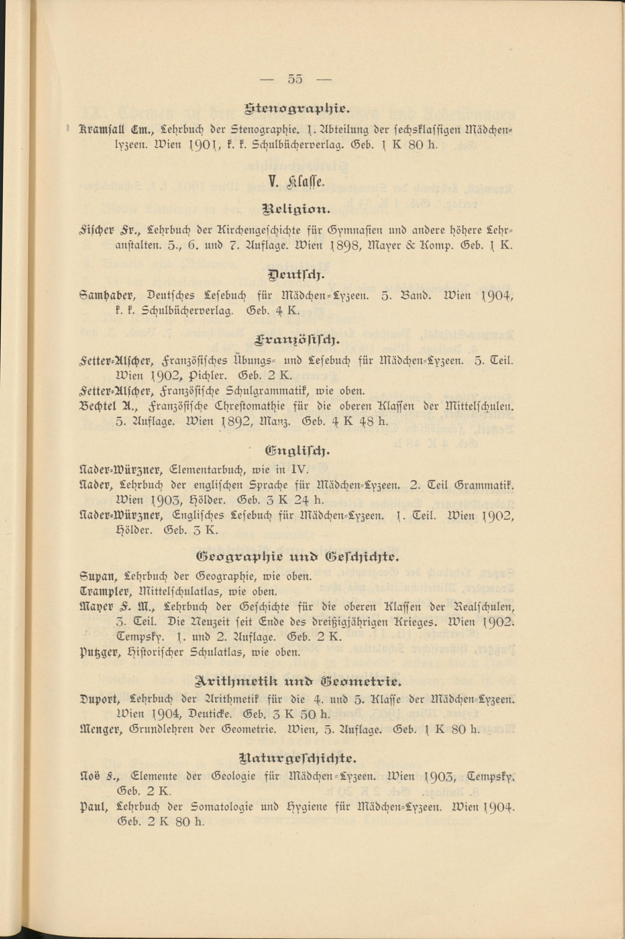 Nader-N)ürzner, Englisches Lesebuch für Mädchen-Lyzeen. s. Teil. Wien 1902, hölder. Geb. 5 K.