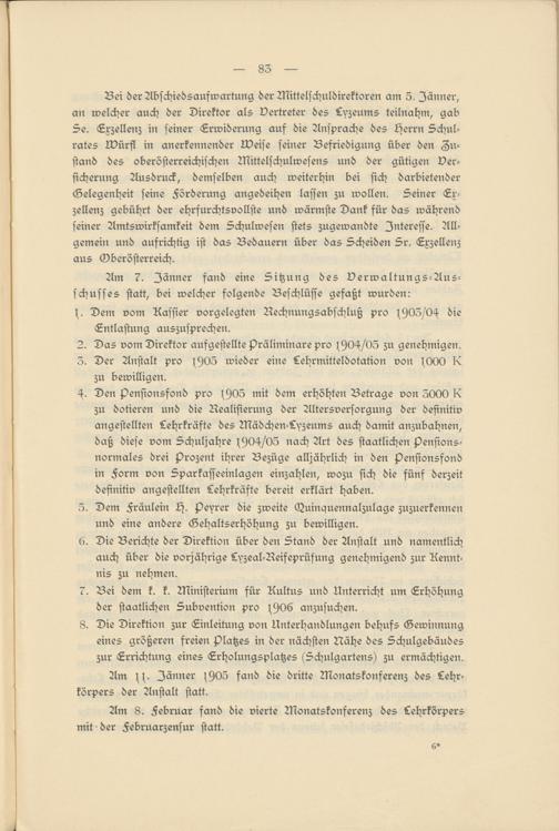 Am ss. Jänner l905 fand die dritte Monatskonserenz des Lehrkörpers der Anstalt statt.