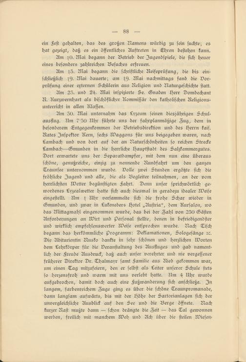 Am 25. und 2H. Mai inspizierte Se. Gnaden Herr Domdechant R. Kurzwernhart als bischöflicher Kommissär den katholischen Religionsunterricht in allen Klassen.