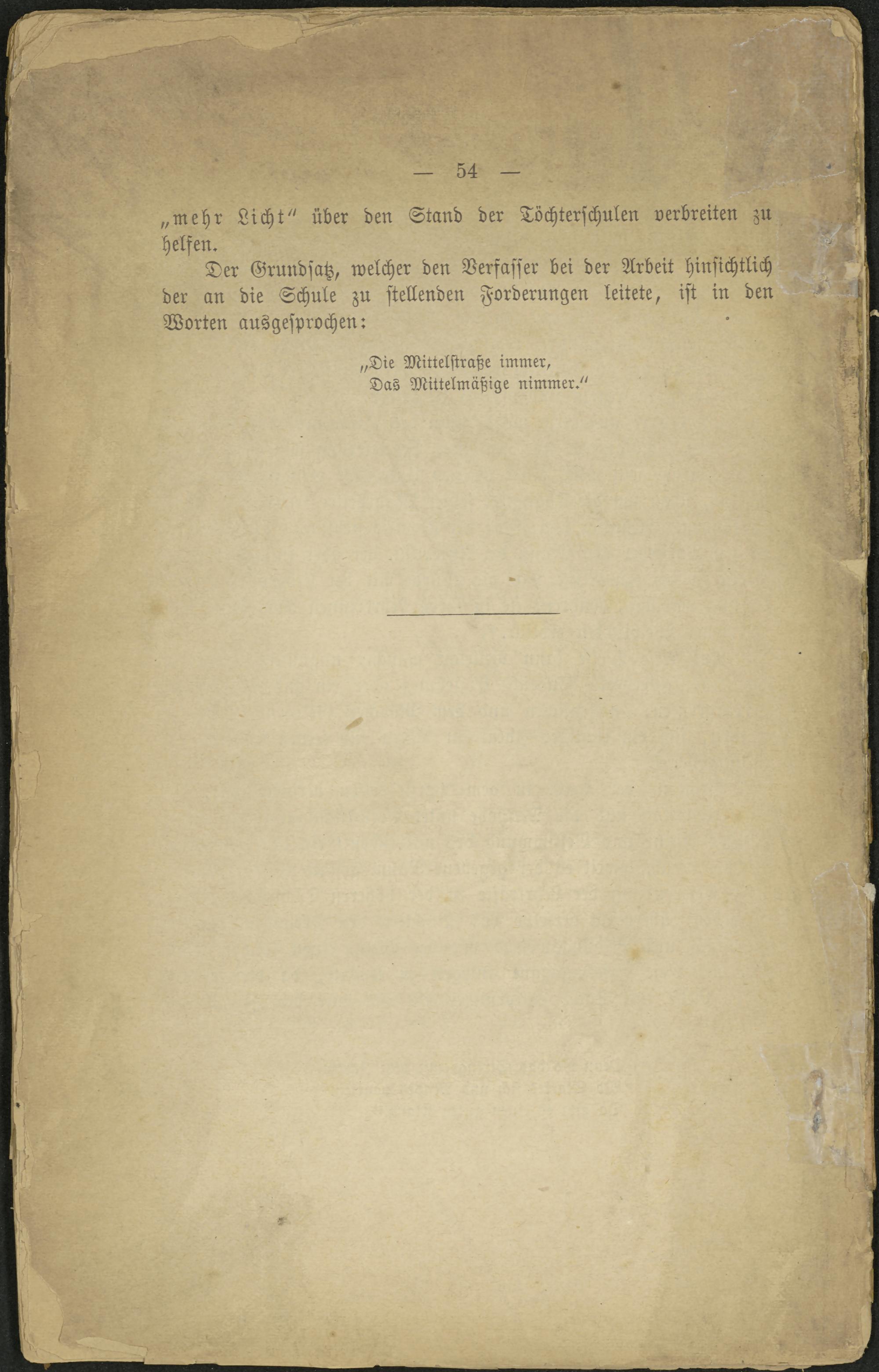 „mehr Licht" über den Stand der Töchterschulen verbreiten zu helfen.