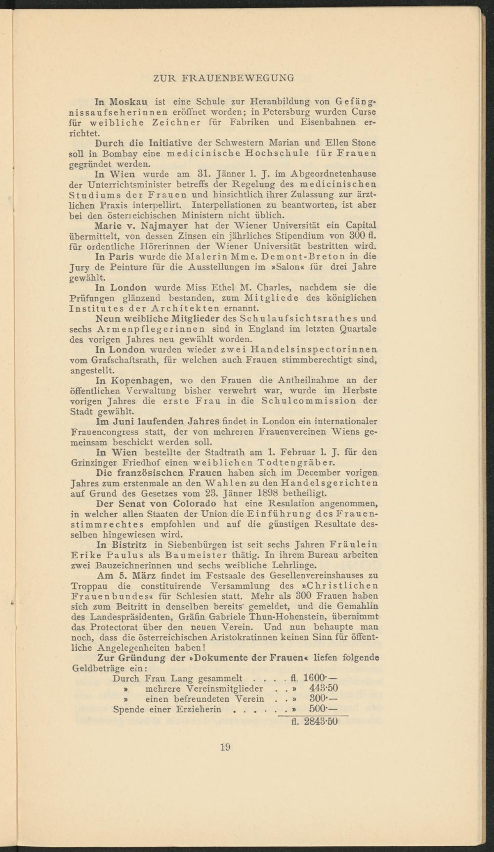 Im Juni laufenden Jahres findet in London ein internationaler Frauencongress statt, der von mehreren Frauenvereinen Wiens gemeinsam beschickt werden soll.