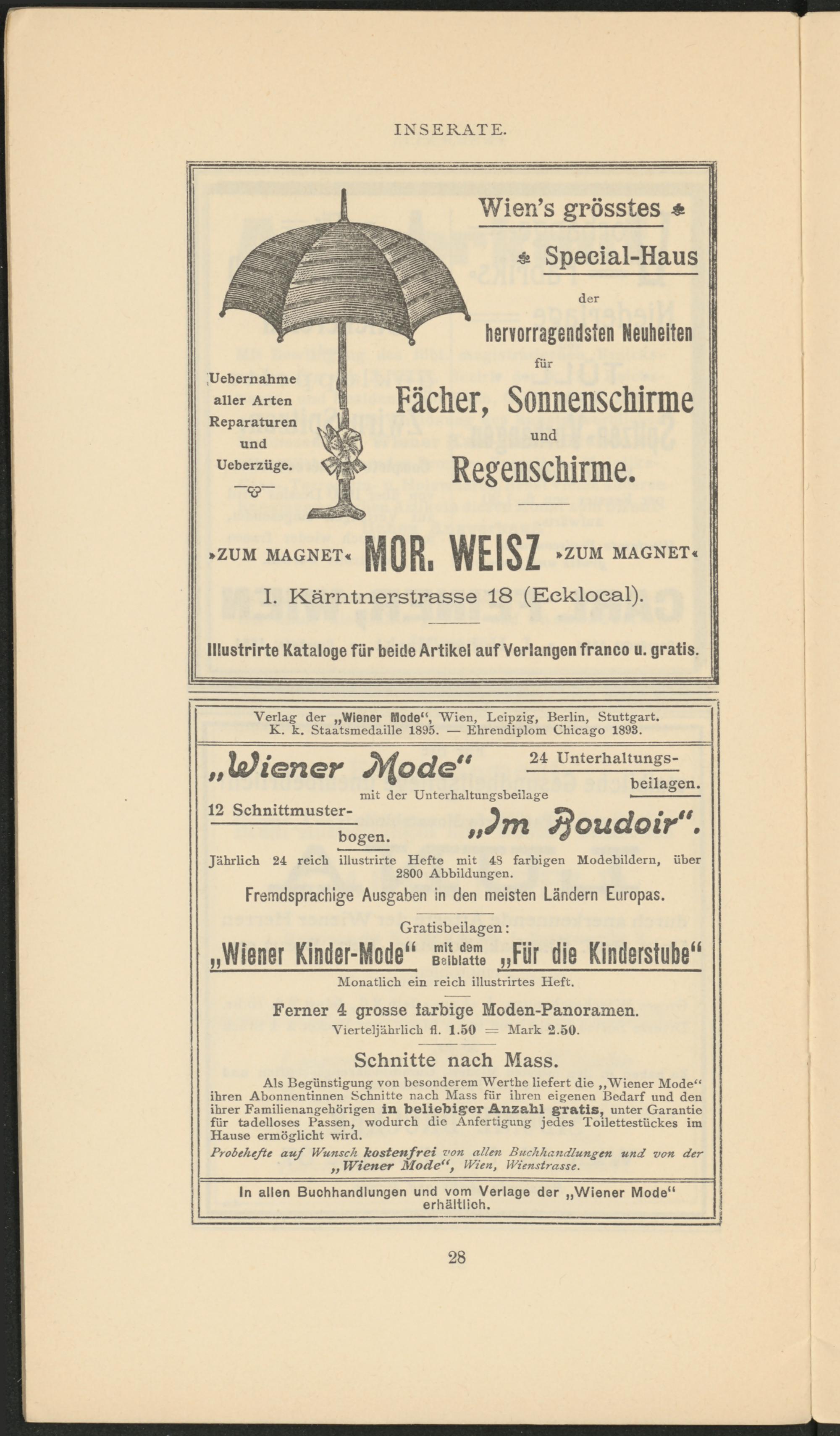 Verlag der „Wiener Blöde“, Wien, Leipzig, Berlin, Stuttgart. K. k. Staatsmedaille 1895. — Ehrendiplom Chicago 1898.
