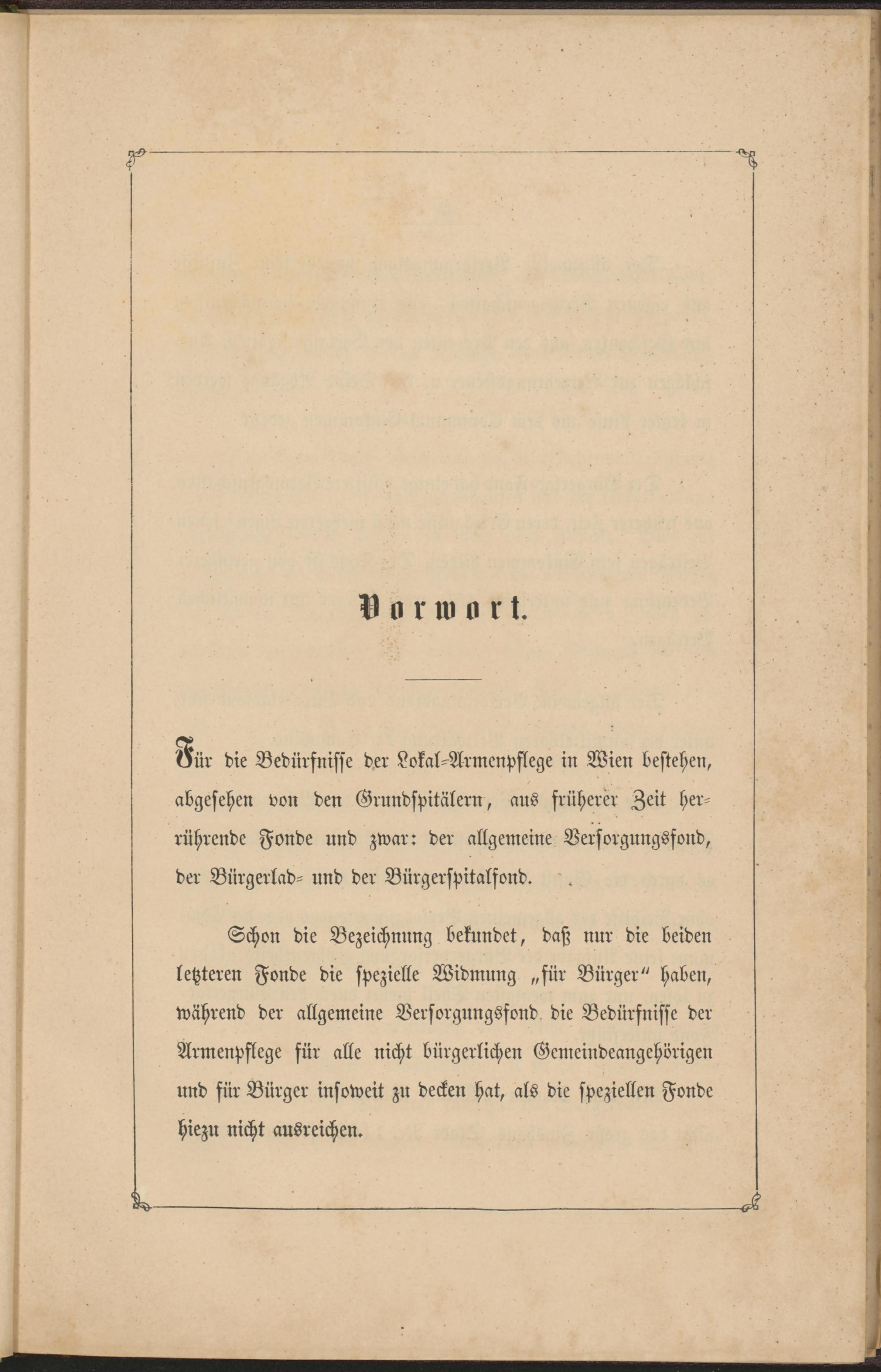 Oür die Bedürfnisse d.er Lokal-Armenpflege in Wien bestehen, abgesehen von den Grundspitälern, aus früherer Zeit herrührende Fonde und zwar: der allgemeine Versorgungsfond, der Bürgerlad- und der Bürgerspitalfond. '.