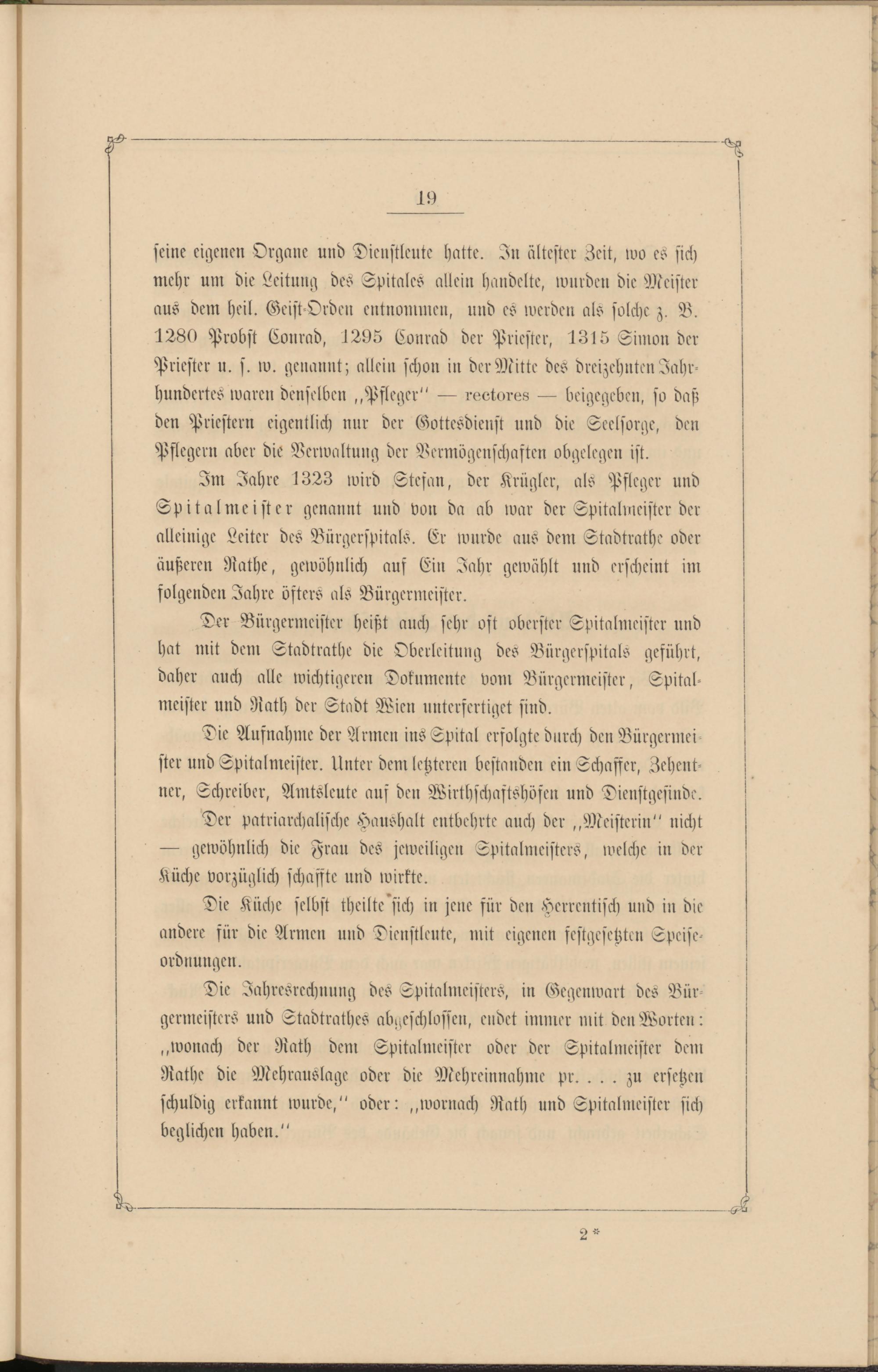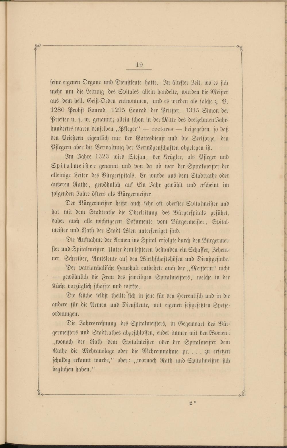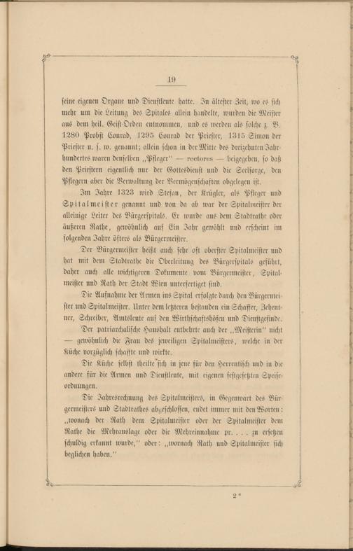 Der Bürgermeister heißt auch sehr oft oberster Spitalmeister und hat mit dem Stadtrathe die Oberleitung des Vürgerspitals geführt, daher auch alle wichtigeren Dokumente vom Bürgermeister, Spital- meister und Rath der Stodt Wien unterfertiget sind.