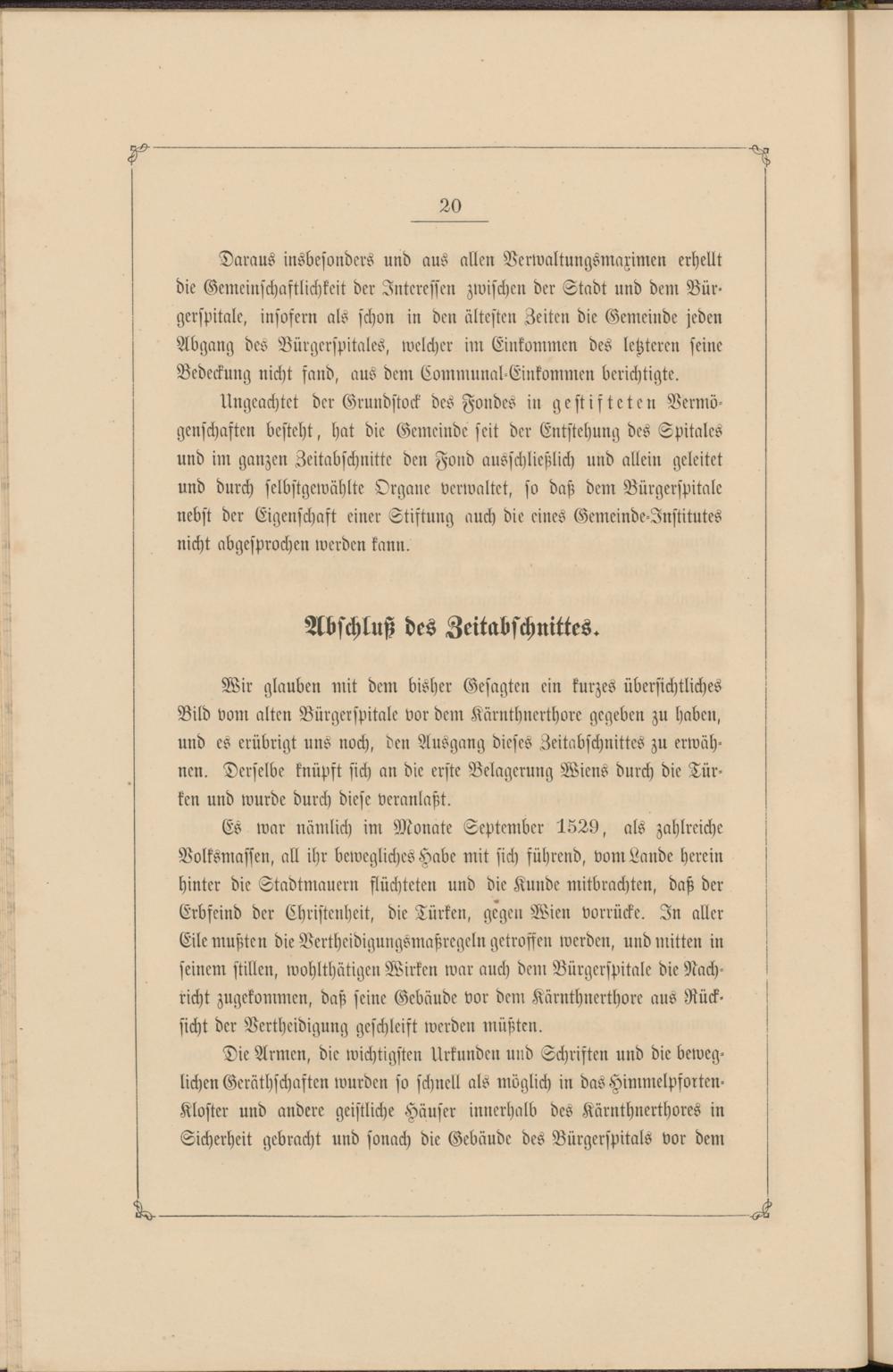 Wir glauben mit dem bisher Gesagten ein kurzes übersichtliches Bild vorn alten Bürgerspitnle vor dem Kärnthnerthore gegeben zu haben, und es erübrigt uns noch, den Ausgang dieses Zeitabschnittes zu erwähnen. Derselbe knüpft sich an die erste Belagerung Wiens durch die Türken und wurde durch diese veranlaßt.