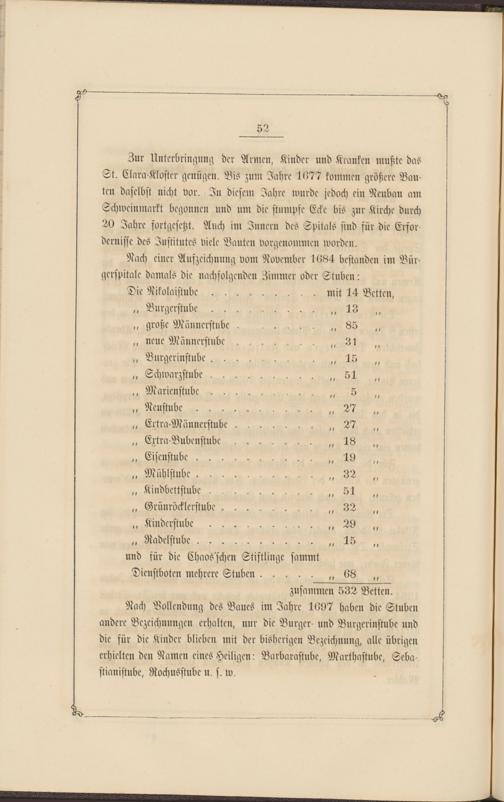 Nach einer Auszeichnung vom November 1684 bestanden im Bür- gerspitale damals die nachfolgenden Zimmer oder Stuben: