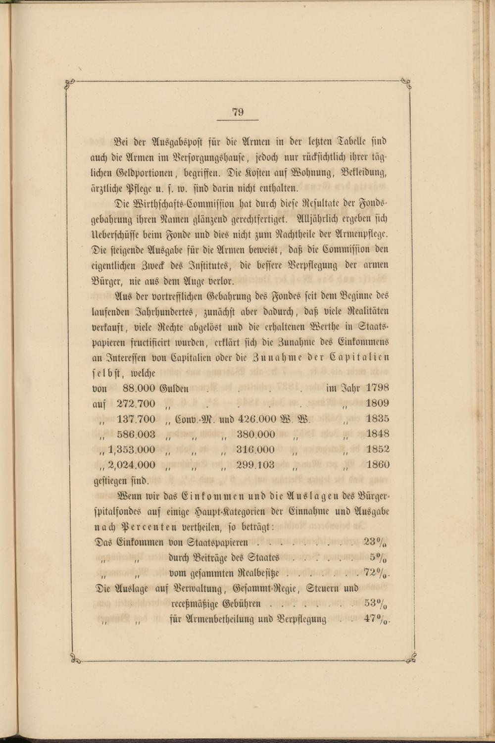 Wenn wir das Einkommen und die Auslagen des Bürger- spitalsondes aus einige Haupt-Kategorien der Einnahme und Ausgabe nach Percenten vertheilen, so beträgt: