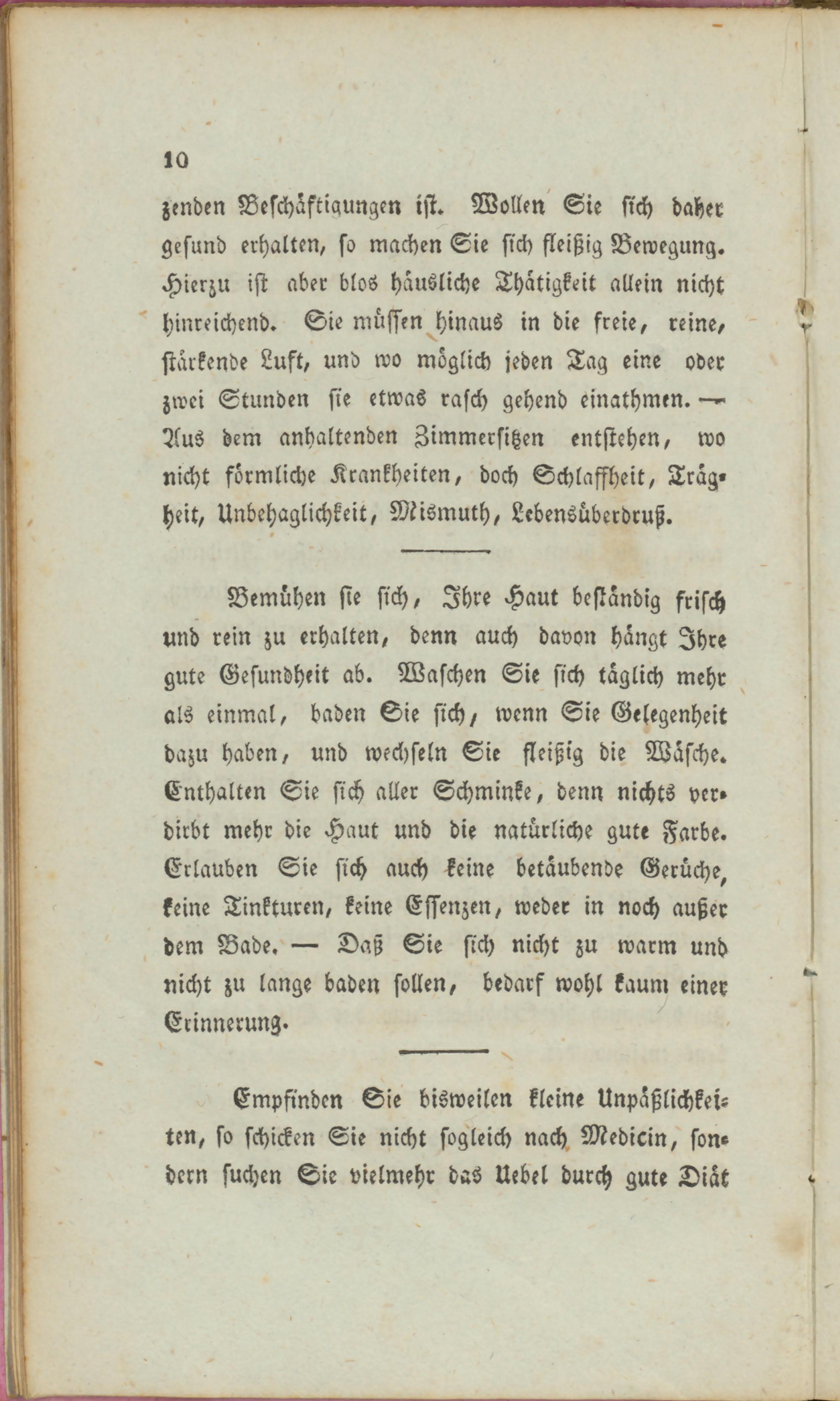 Empfinden Sie bisweilen kleine Unpäßlichkeiten, so schicken Sie nicht sogleich nach Medicin, sondern suchen Sie vielmehr das Uebel durch gute Diät