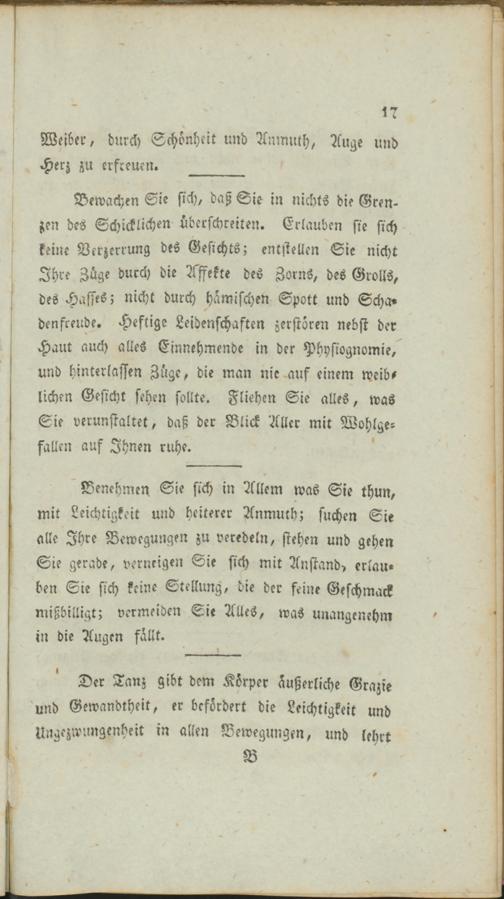 Der Tanz gibt dem Körper äußerliche Grazie und Gewandtheit, er befördert die Leichtigkeit und Ungezwungenheit in allen Bewegungen, und lehrt