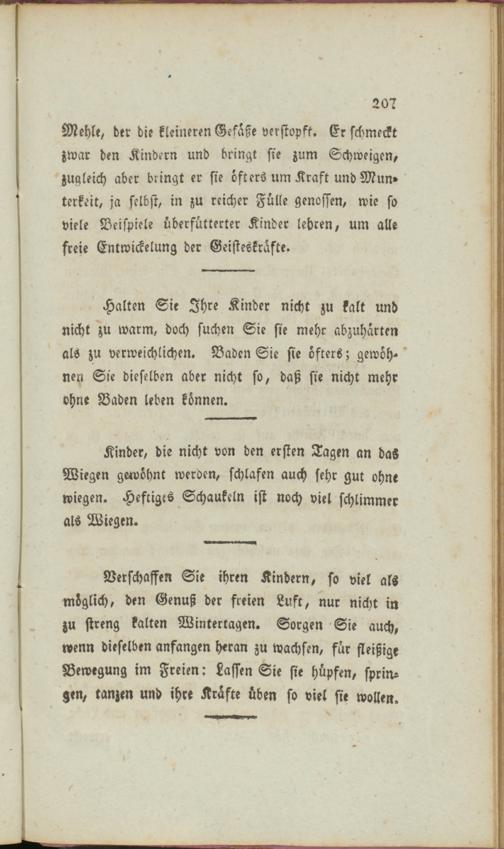 Halten Sie Ihre Kinder nicht zu kalt und nicht zu warm, doch suchen Sie sie mehr abzuhärten als zu verweichlichen. Baden Sie sie öfters; gewöh. nen Sie dieselben aber nicht so, daß sie nicht mehr ohne Baden leben können.