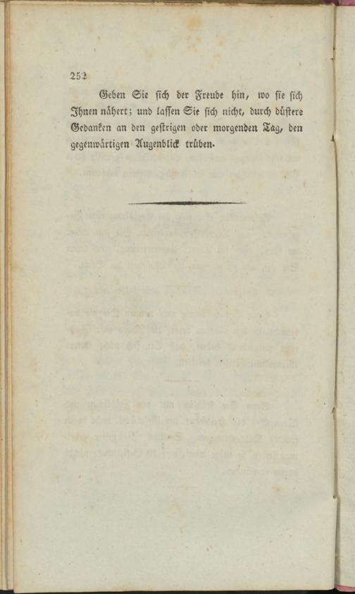 Geben Sie sich der Freude hin, wo sie sich Ihnen nähert; und lassen Sie sich nicht, durch düstere Gedanken an den gestrigen oder morgenden Tag, den gegenwärtigen Augenblick trüben.