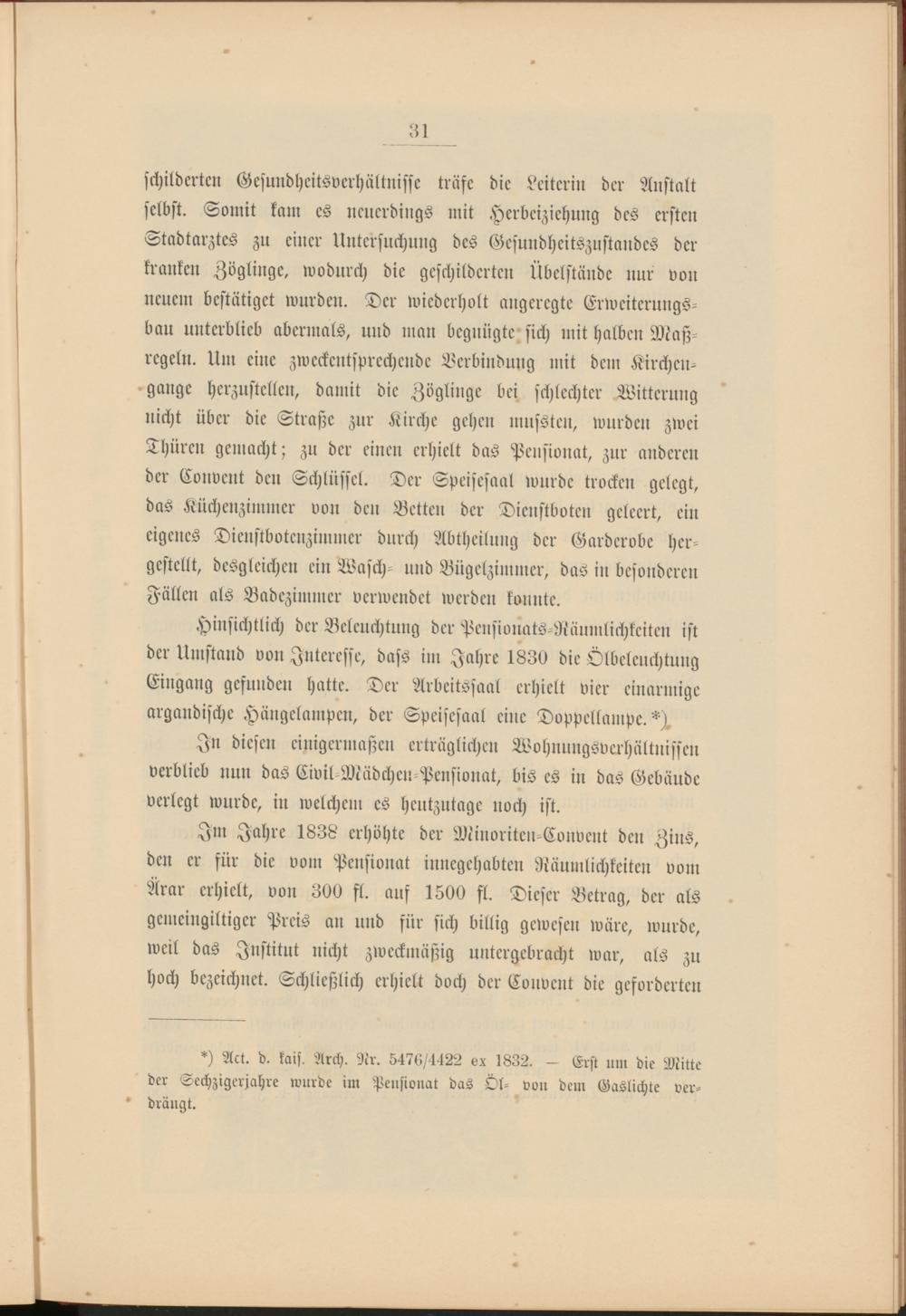*) Act. d. kais. Arch. Nr. 5476/1122 vx 1832. — Erst um die Mitte der Sechzigerjahre wurde im Pensionat das Öl- von dem Gaslichte ver- * drängt.