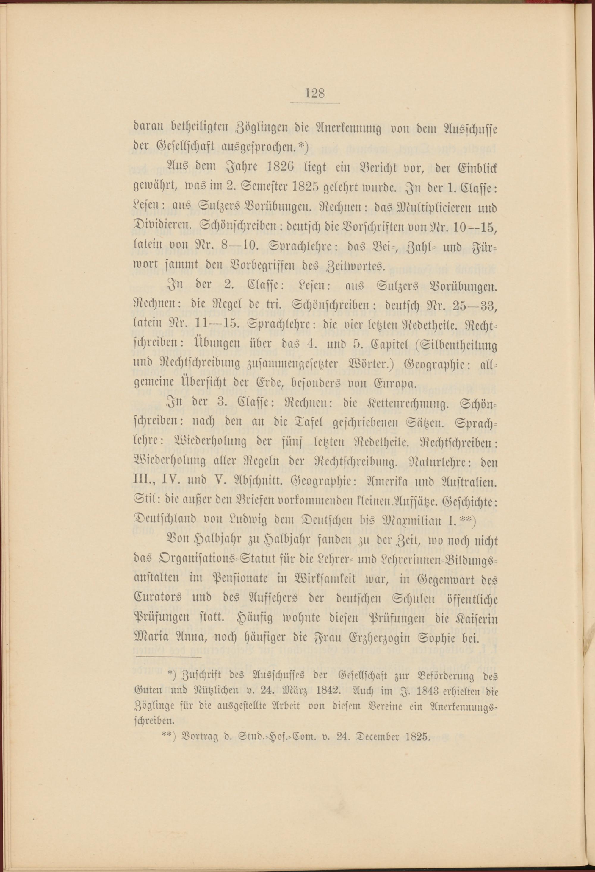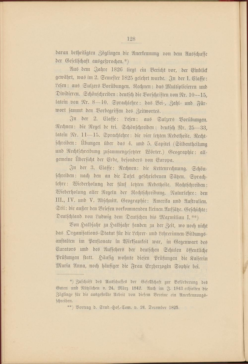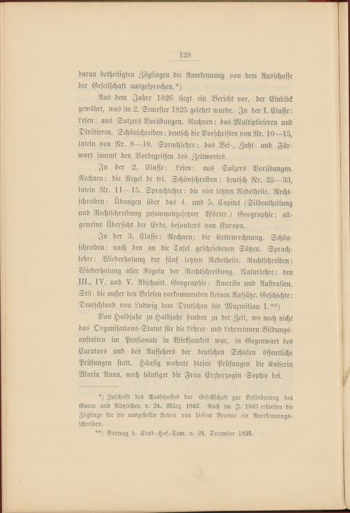 *) Zuschrift des Ausschusses der Gesellschaft zur Beförderung des Guten und Nützlichen v. 24. März t842. Auch im I. 1848 erhielten die Zöglinge für die ausgestellte Arbeit von diesem Vereine ein Anerkennungsschreiben.