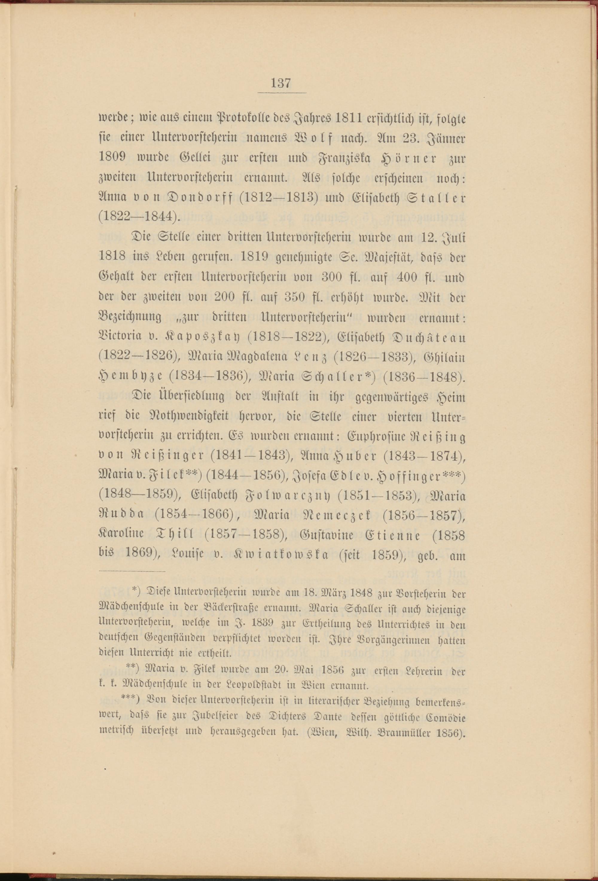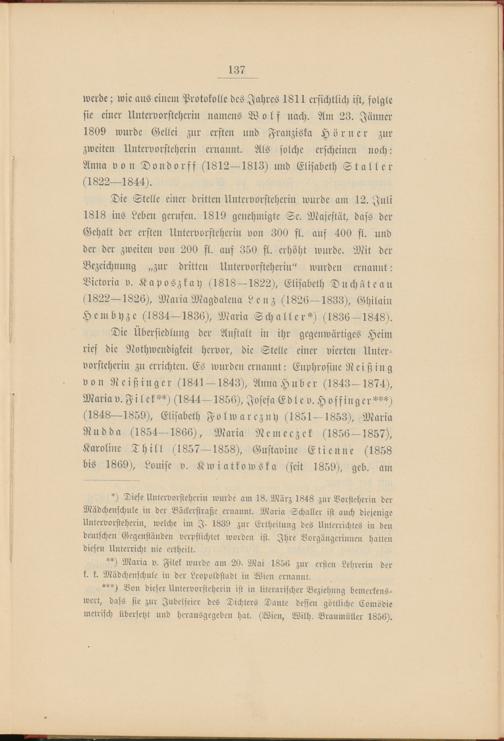 ***) Von dieser Untervorsteherin ist in literarischer Beziehung bemerkens­wert, dass sie zur Jubelfeier des Dichters Dante dessen göttliche Comödie metrisch übersetzt und herausgegeben hat. (Wien, Wilh. Braurnllller 1856).