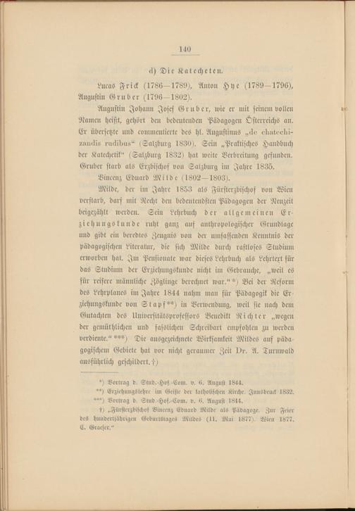 1) „Fürsterzbischof Vincenz Eduard Milde als Pädagoge. Zur Feier des hundertjährigen Geburtstages Mitdes (11. Mai 1877). Wien 1877. C. Graeser."