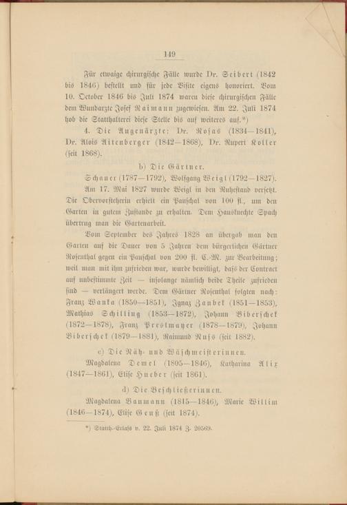 4. Die Augenärzte: Dr. Rosas (1834—1841), Dr. Alois Aitenberger (1842—1868), Dr. Rupert Koller (seit 1866).