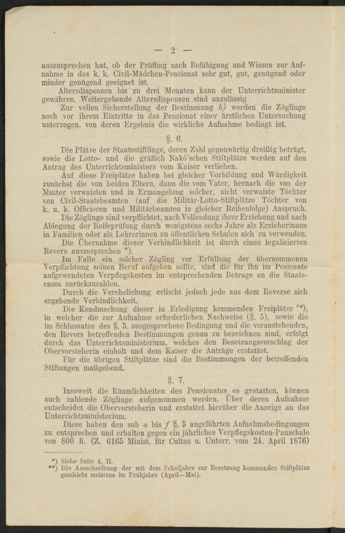 Die Lundmaebung die8er in krledigung kommenden kreiMt^e **), in weleber die ?.ur Vulnabme erforderlieben Kaebwei86 (8- 5), 80 wie die im 8eblu88at^e de8 §. 5. au8g68xroebeue Dedingung und die voran8tebenden, den Dever8 betreffenden De8timmungen genau ^u be^eiebnen 8ind, erfolgt dureb da8 Dnterriebt8wini8terium, welebe8 den De 86 t 2 uug 8 vor 8 eblag der Obervor8teberin einbolt und dem kamer die Vntrüge ermattet.