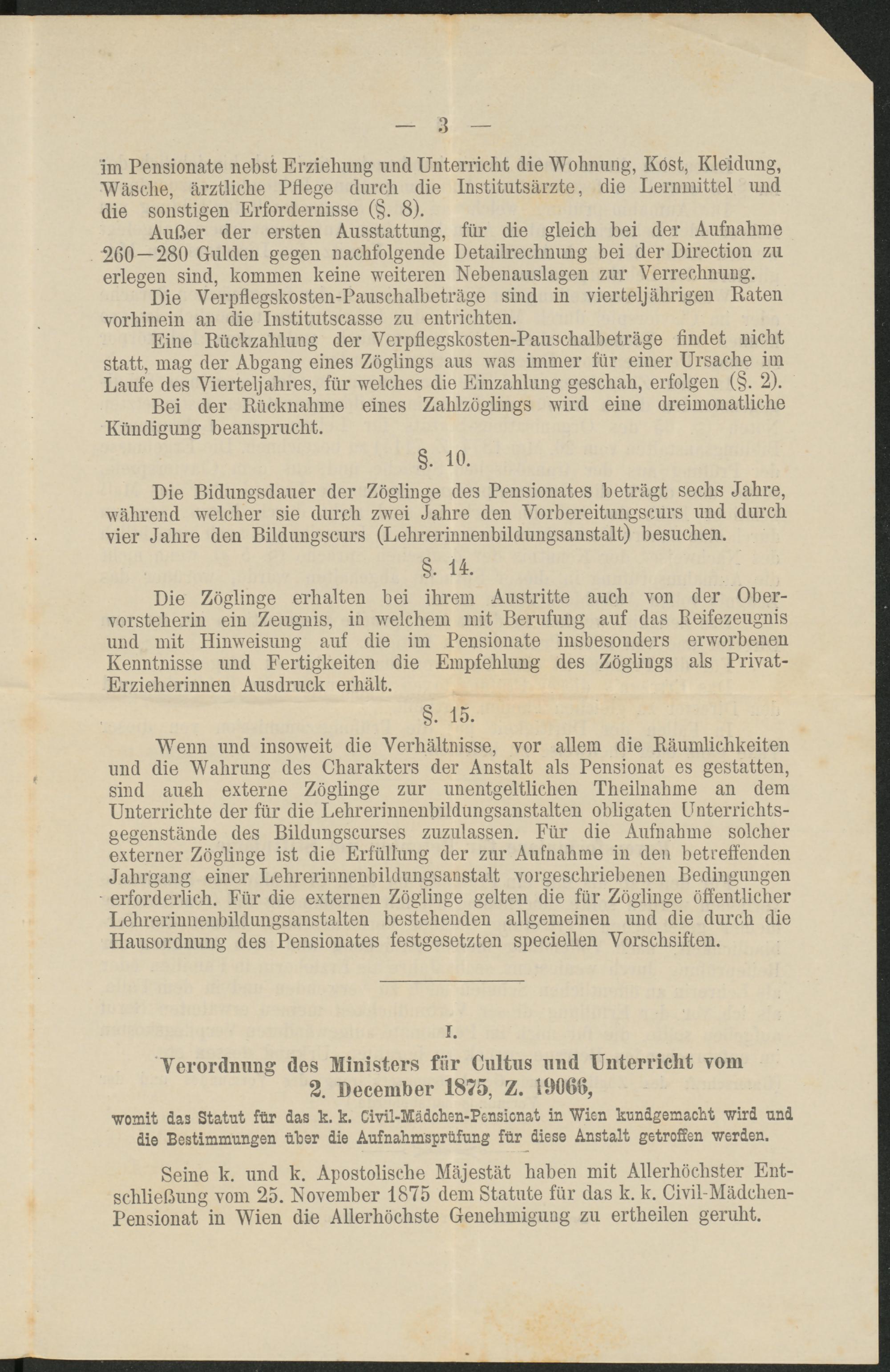 Leine k. unä k. ^postolisebe^'estät baben mit ^llerböebster Kut- seblieläuvg vom 25. November 1875 äem Ltatnte kür äas k. k. Oivil-Nääeben- Kensionat in Men äie Merböebste Oenebmiguug 2 u ertbeilen gerubt.