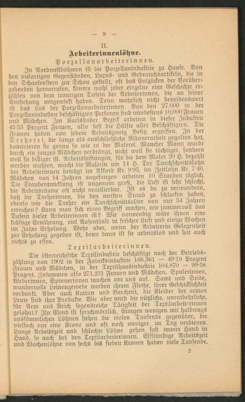 Dasein dieser Arbeiterinnen ist? Wie notwendig wäre ihnen eine , kräftige Ernährung, viel Aufenthalt in frischer Lust und einige Wochen t im Jahre Erholung. Wehe aber. wenn der Arbeiterin Gelegenheit zur Erholung gegeben ist, denn dann ist sie arbeitslos und hat auch e nichts zu essen'.