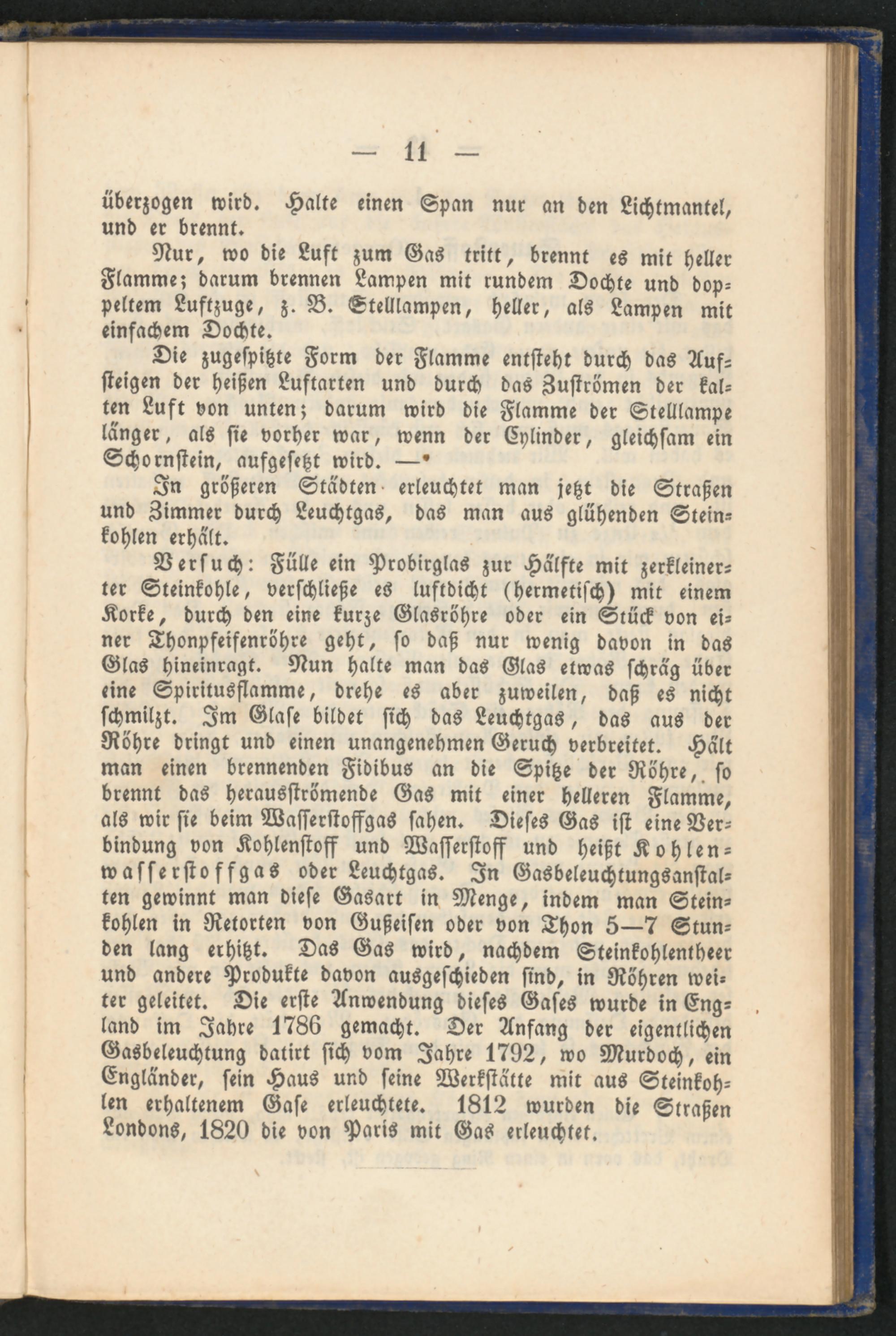 In größeren Städten erleuchtet man jetzt die Straßen und Zimmer durch Leuchtgas, das man aus glühenden Steinkohlen erhält.