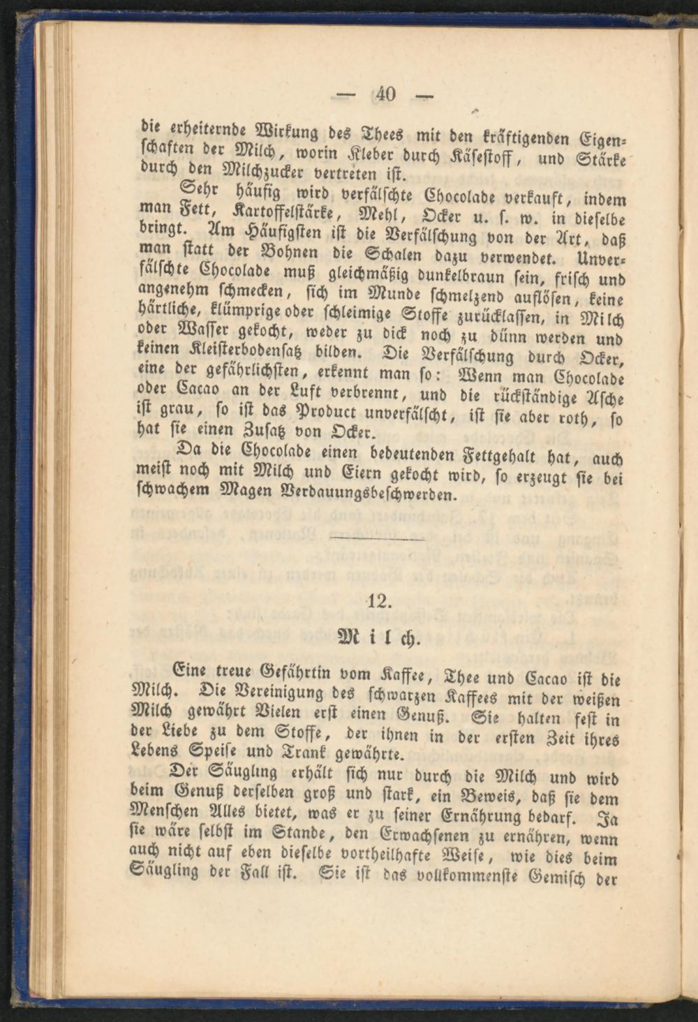 Eine treue Gefährtin vom Kaffee, Thee und Eacao ist die Milch. Die Vereinigung des schwarzen Kaffees mit der weißen Milch gewährt Vielen erst einen Genuß. Sie halten fest in der Liebe zu dem Stoffe, der ihnen in der ersten Zeit ihres Lebens Speise und Trank gewährte.