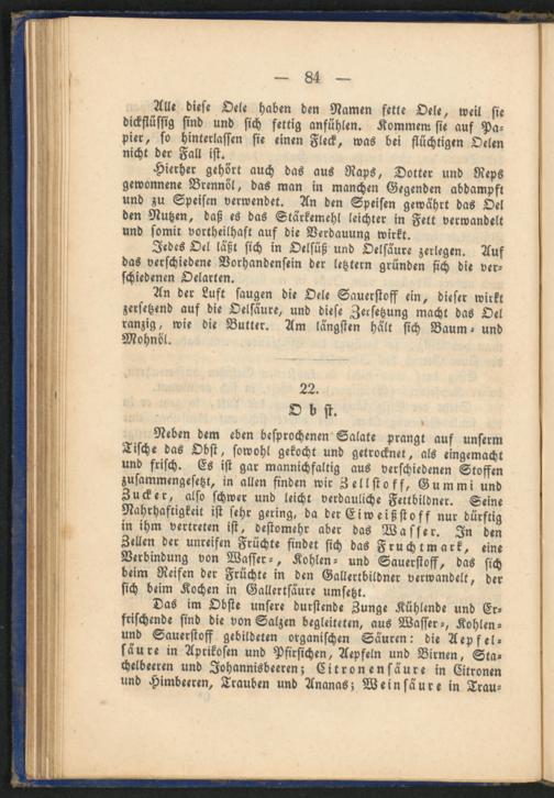 Das im Obste unsere durstende Zunge Kühlende und Erfrischende sind die von Salzen begleiteten, aus Wasser-, Kohlen - und Sauerstoff gebildeten organischen Säuren: die Aepfel- säure in Aprikosen und Pfirsichen, Aepfeln und Birnen, Stachelbeeren und Johannisbeeren; Eitronensäure in Citronen und Himbeeren, Trauben und Ananas; Weinsäure in Trau-