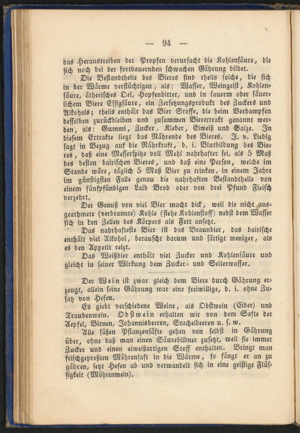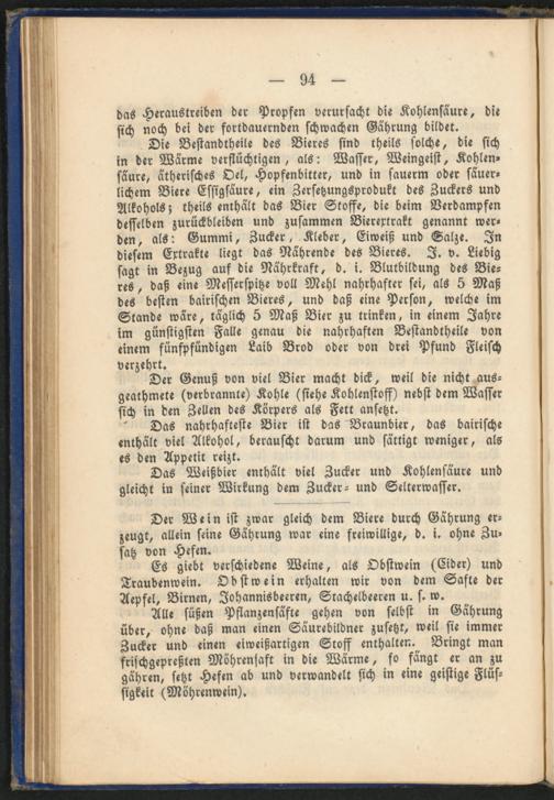 Das nahrhafteste Bier ist das Braunbier, das bairische enthält viel Alkohol, berauscht darum und sättigt weniger, als es den Appetit reizt.