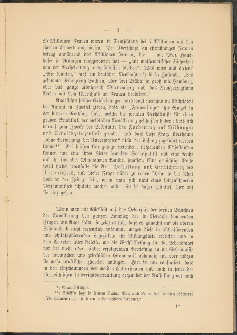 **) Schaffte sagt in feinem Buche: Bau und Leben des socialen Körpers: „Die Frauenfragen find ein pathologisches Product."