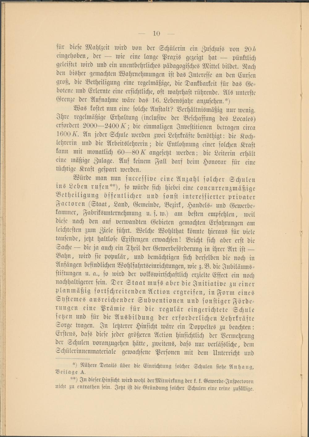 für diese Mahlzeit wird von der Schülerin ein Zuschuss von 20/, eingehoben, der — wie eine lange Praxis gezeigt hat — pünktlich geleistet wird und ein unentbehrliches pädagogisches Mittel bildet. Nach den bisher gemachten Wahrnehmungen ist das Interesse an den Cursen groß, die Betheiligung eine regelmäßige, die Dankbarkeit sür das Gebotene und Erlernte eine ersichtliche, oft wahrhaft rührende. Als unterste Grenze der Ausnahme wäre das 16. Lebensjahr anzusehen.*)