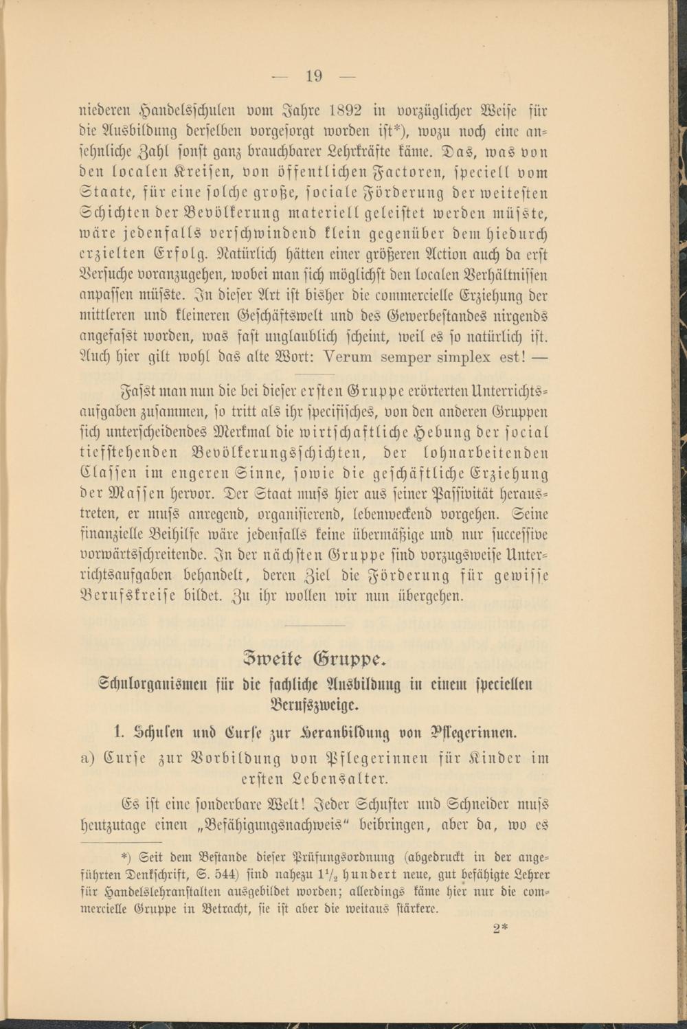 *> Seit dem Bestände dieser Prüfungsordnung (abgedruckt in der angeführten Denkschrift, S. 544) sind nahezu IV? hundert neue, gut befähigte Lehrer für Handelslehranstalten ausgebildet worden; allerdings käme hier nur die commercielle Gruppe in Betracht, sie ist aber die weitaus stärkere.