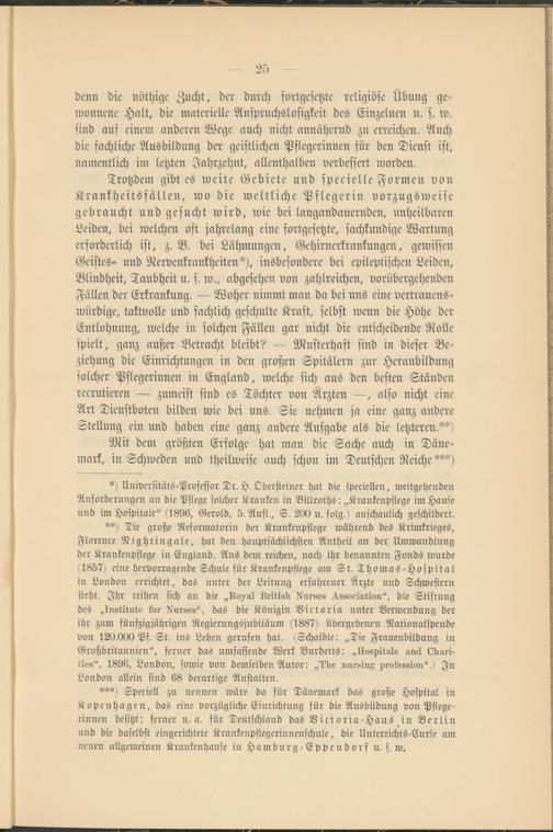 ***» Speciell zu nennen wäre da für Dünemark das große Hospital in Kopenhagen, das eine vorzügliche Einrichtung für die Ausbildung von Pflegerinnen besitzt: ferner u. a. für Deutschland das Victoria-Haus in Berlin und die daselbst eingerichtete Krankenpflegerinuenschule, die Unterrichts-Curse am neuen allgemeinen Krankenhause in Hamburg-Eppendorf u. s. w.