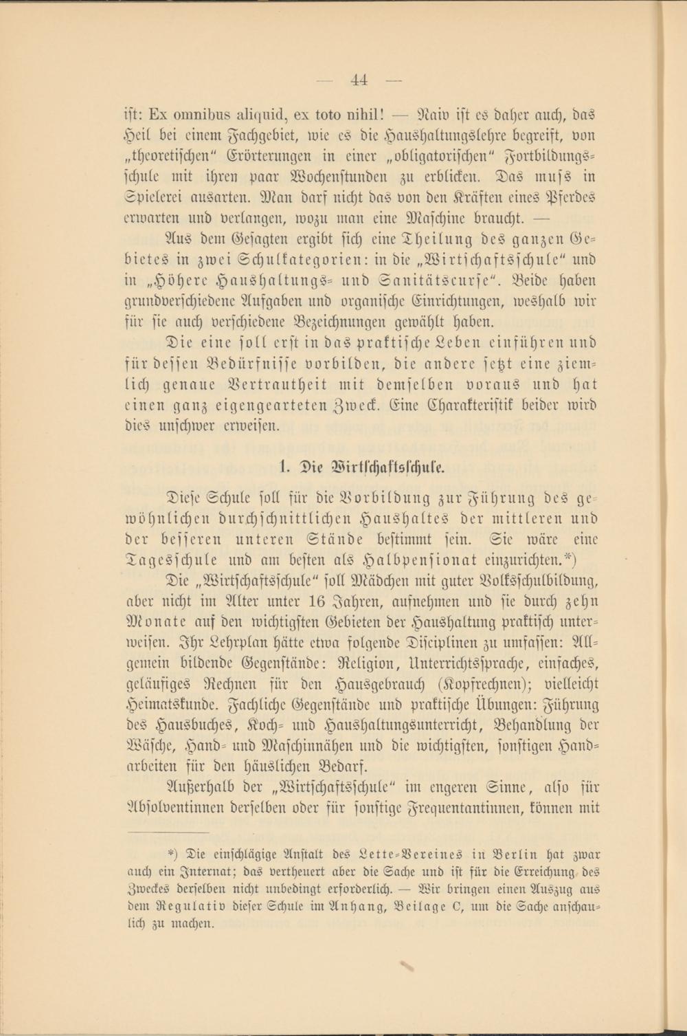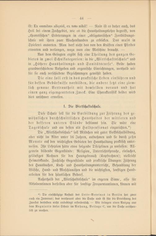 Diese Schule soll für die Vorbildung zur Führung des ge wöhnlichen durchschnittlichen Haushaltes der mittleren und der besseren unteren Stände bestimmt sein. Sie wäre eine Tagesschule und am besten als Halbpensionat einzurichten.'*)