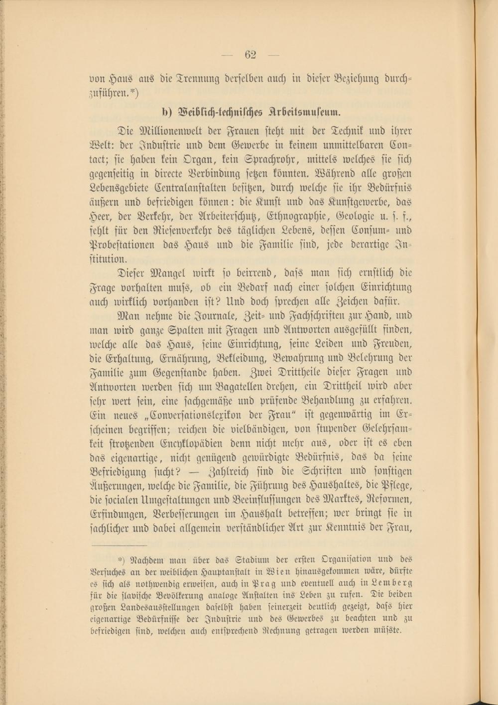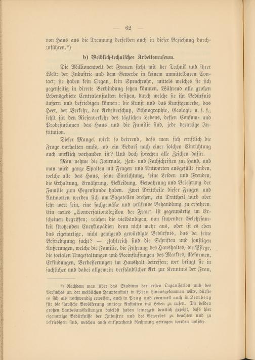 *) Nachdem man über das Stadium der ersten Organisation und des Versuches an der weiblichen Hauptanstalt in Wien hinausgekommen wäre, dürfte es sich als nothwendig erweisen, auch in Prag und eventuell auch inLemberg für die slavische Bevölkerung analoge Anstalten ins Leben zu rufen. Die beiden großen Landesausstellungen daselbst haben seinerzeit deutlich gezeigt, dass hier eigenartige Bedürfnisse der Industrie und des Gewerbes zu beachten und zu befriedigen sind, welchen auch entsprechend Rechnung getragen werden müsste.