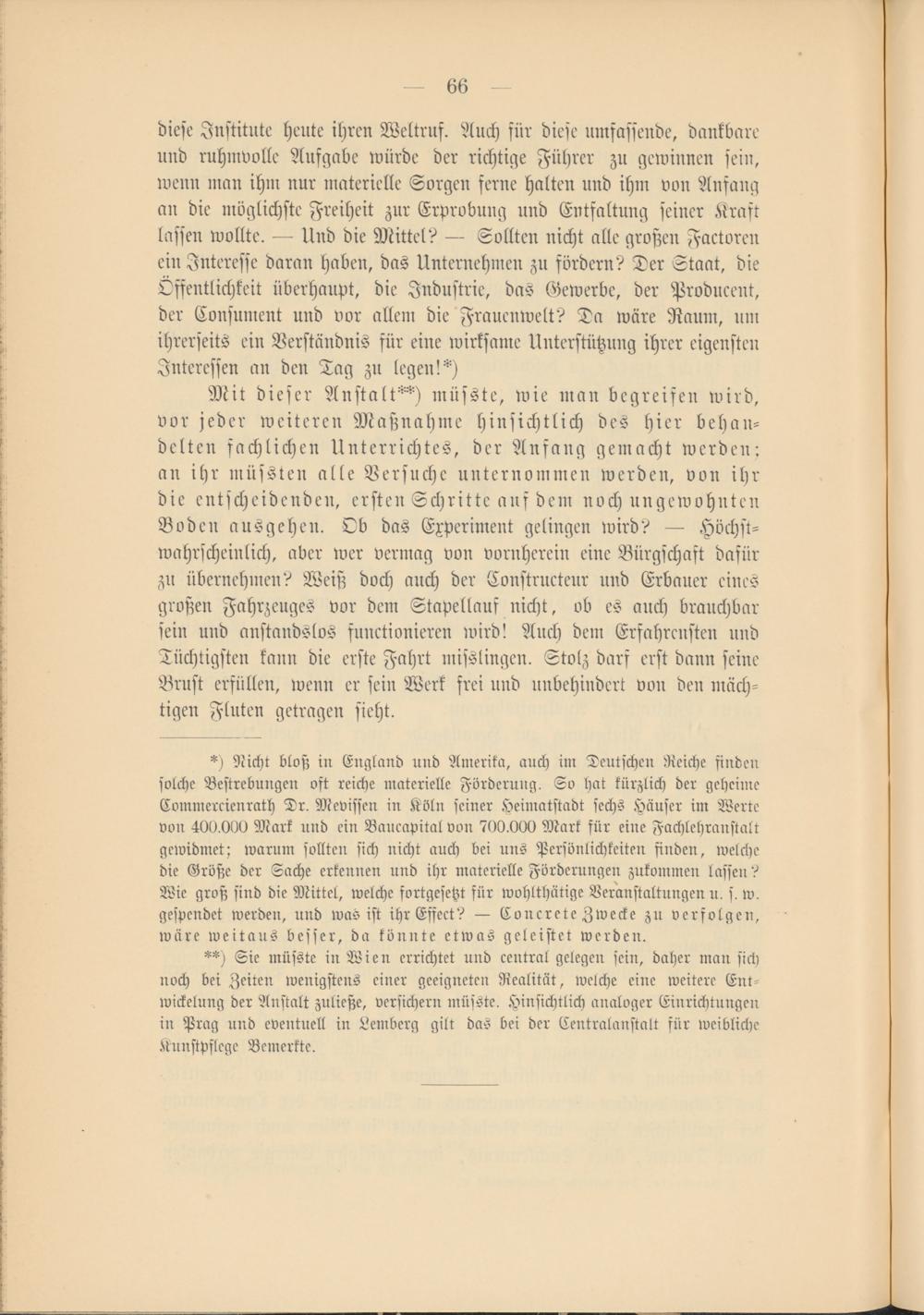 **) Sie müsste in Wien errichtet und central gelegen sein, daher man sich noch bei Zeiten wenigstens einer geeigneten Realität, welche eine weitere Entwickelung der Anstalt zuließe, versichern müsste. Hinsichtlich analoger Einrichtungen in Prag und eventuell in Lemberg gilt das bei der Eentralanstalt für weibliche Kunstpflcge Bemerkte.
