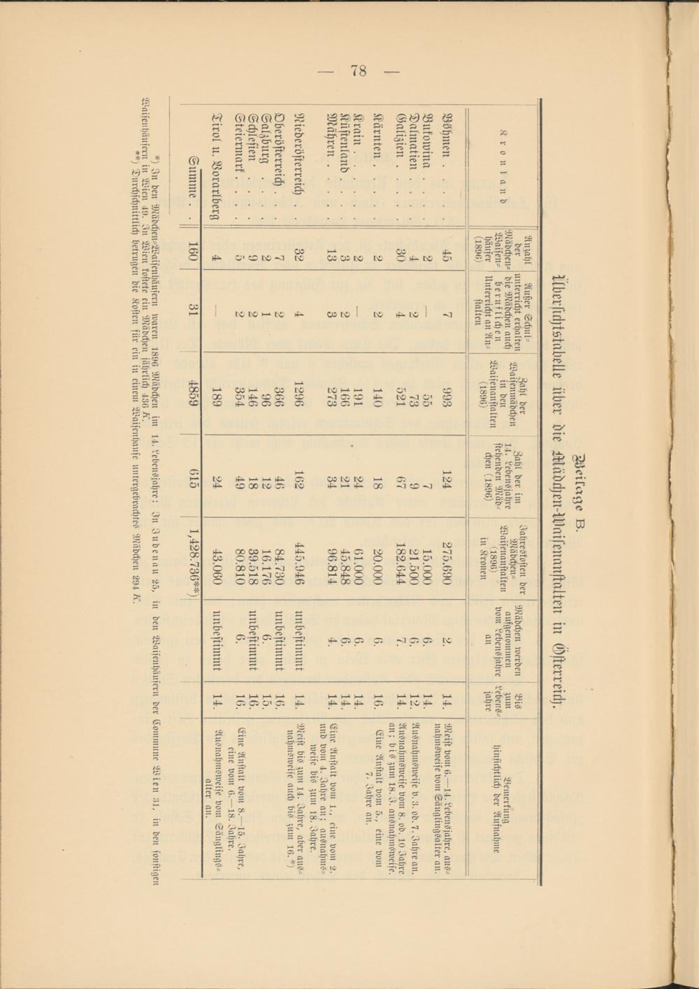 Ilderslchtstadelle über die Mädchen-Waiseuanstnlten in Österreich.