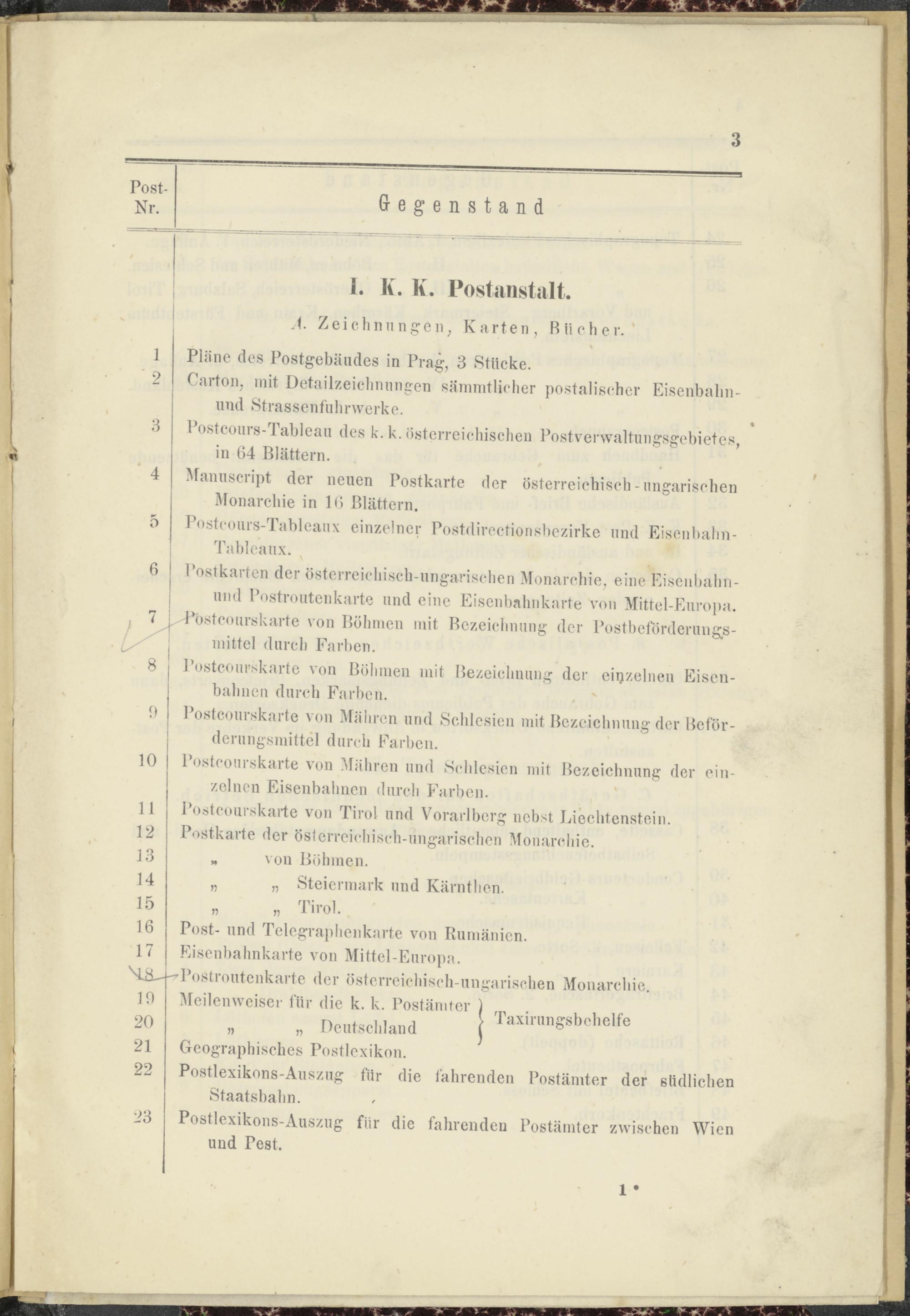 3 Postcours-Tableau des k. k. österreichischen Postverwaltungsgebietes, in 64 Blättern.