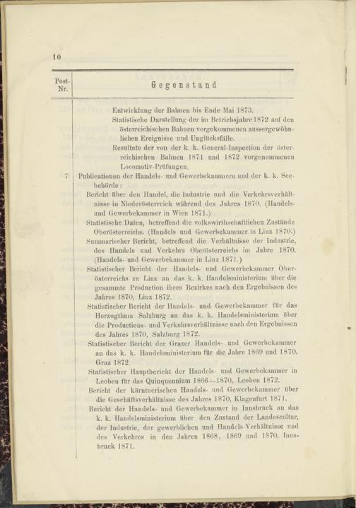 Bericht über den Handel, die Industrie und die Verkehrsverhältnisse in Niederösterreich während des Jahres 1870. (Handelsund Gewerbekammer in Wien 1871.)