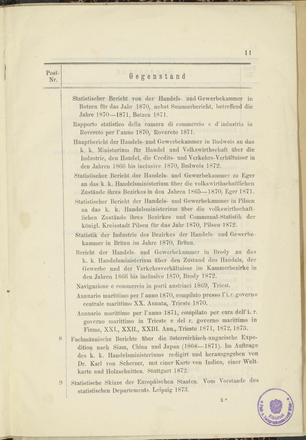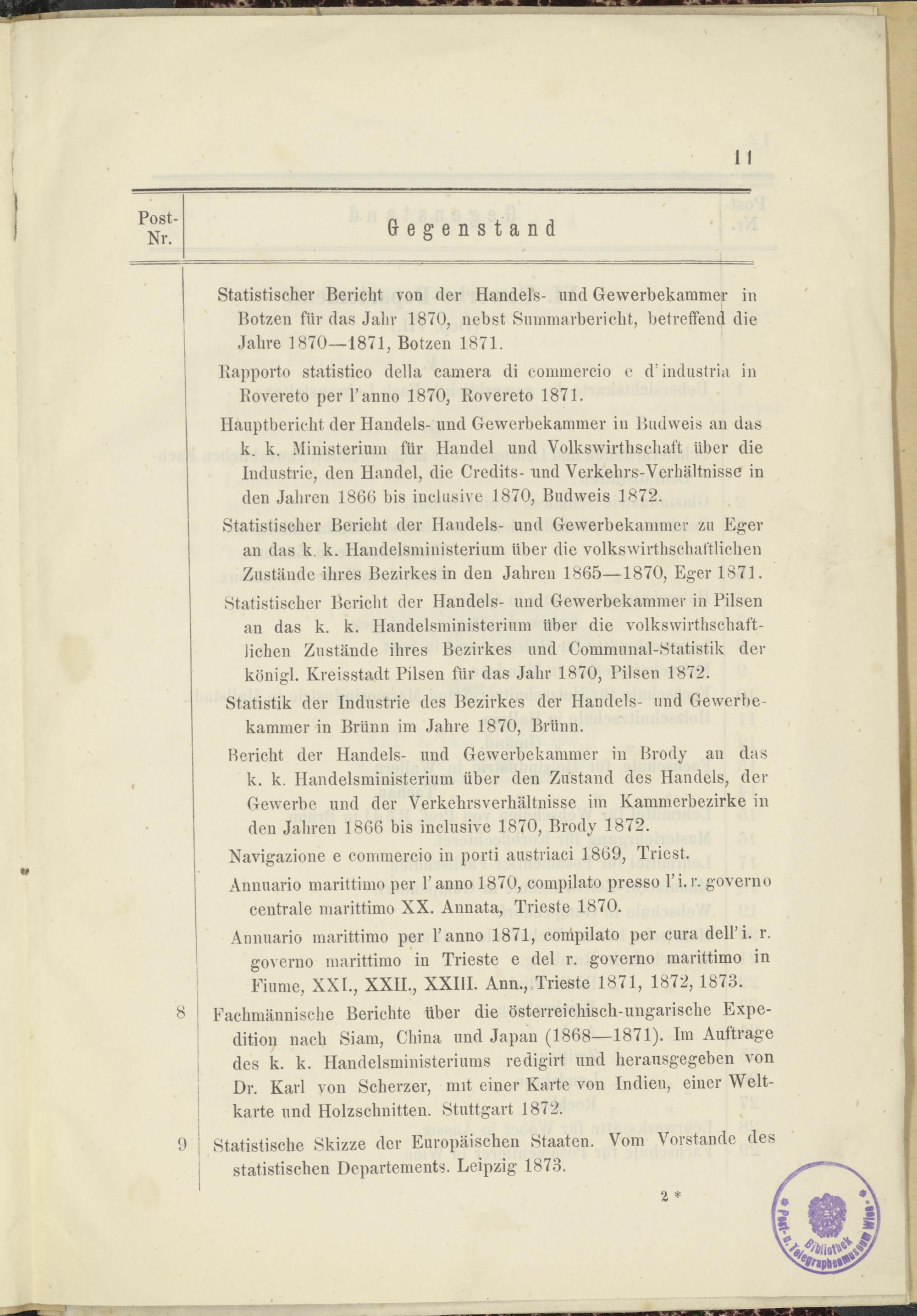 Statistischer Bericht der Handels- und Gewerbekammer zu Eger an das k. k. Handelsministerium über die volkswirtschaftlichen Zustände ihres Bezirkes in den Jahren 1865—1870, Eger 1871. Statistischer Bericht der Handels- und Gewerbekammer in Pilsen an das k. k. Handelsministerium über die volkswirtschaftlichen Zustände ihres Bezirkes und Communal-Statistik der königl. Kreisstadt Pilsen für das Jahr 1870, Pilsen 1872. Statistik der Industrie des Bezirkes der Handels- und Gewerbekammer in Brünn im Jahre 1870, Brünn.