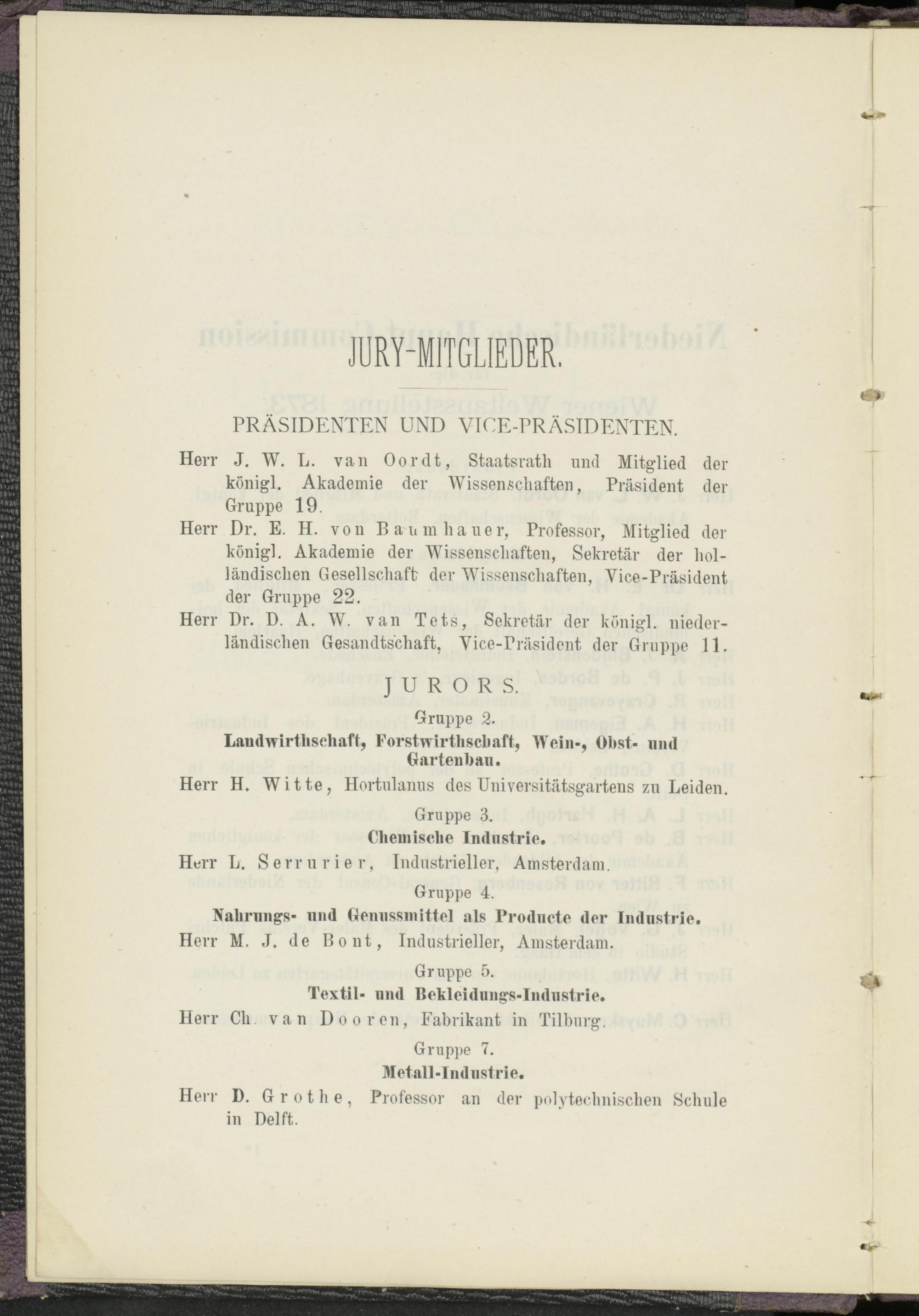 Herr J. W. L. van Oordt, Staatsrath und Mitglied der königl. Akademie der Wissenschaften, Präsident der Gruppe 19.