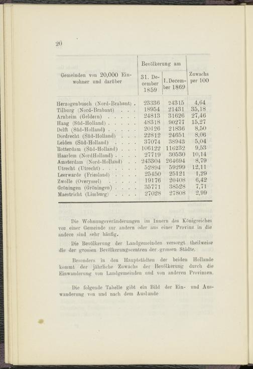 Besonders in den Hauptstädten der beiden Hollande kommt der jährliche Zuwachs der Bevölkerung durch die Einwanderung von Landgemeinden und von anderen Provinzen.