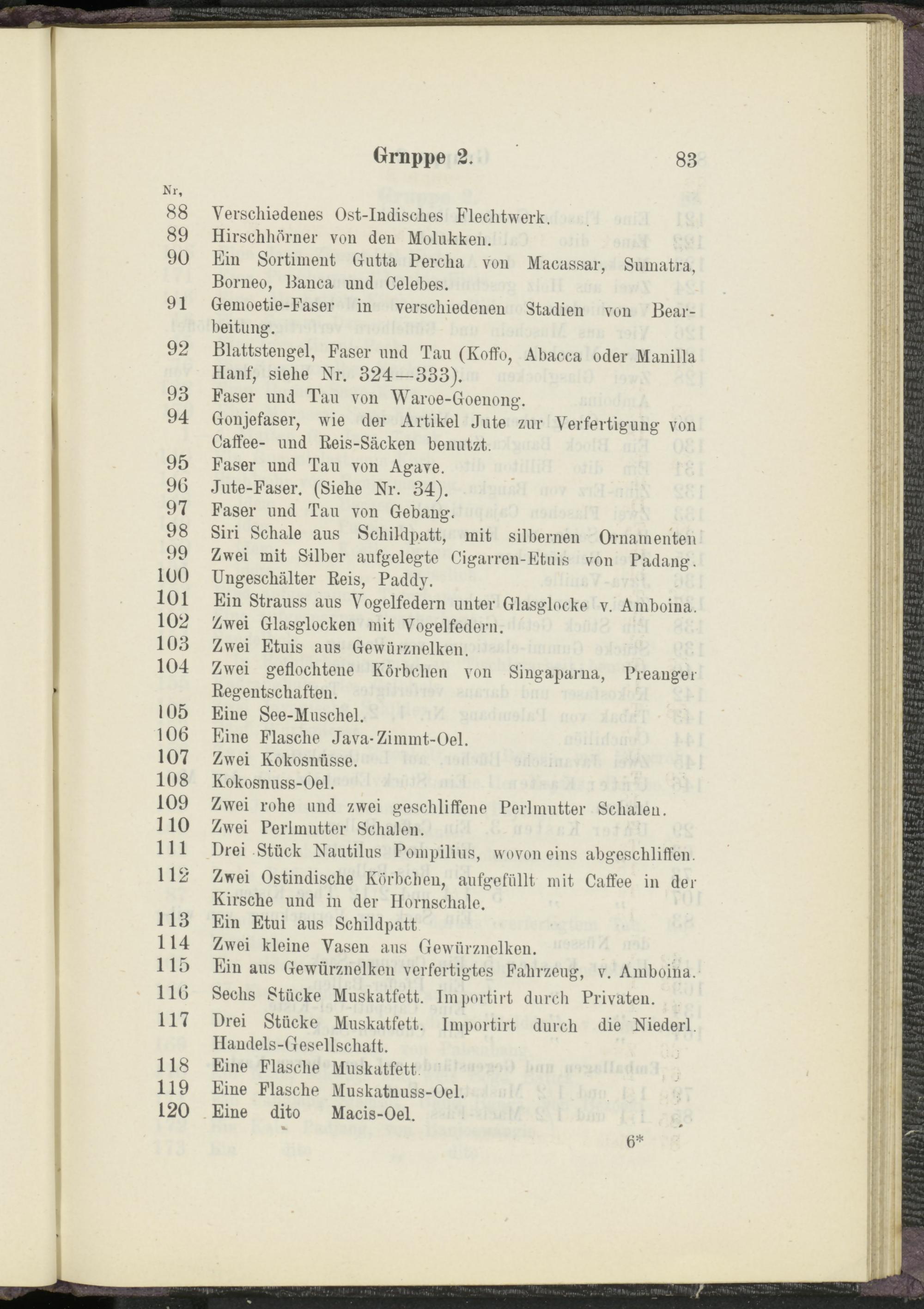 116 Sechs Stücke Muskatfett. Im portirt durch Privaten.