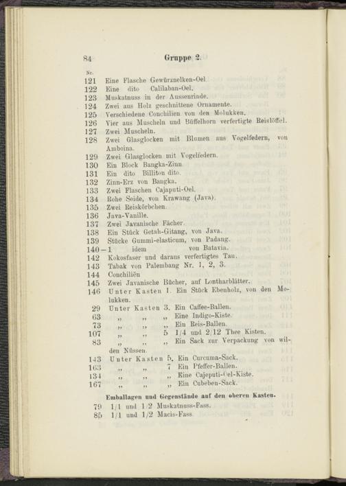 Emballagen nml Gegenstände auf den oberen Kasteu. 79 1,1 und 12 Muskatnuss-Fass.