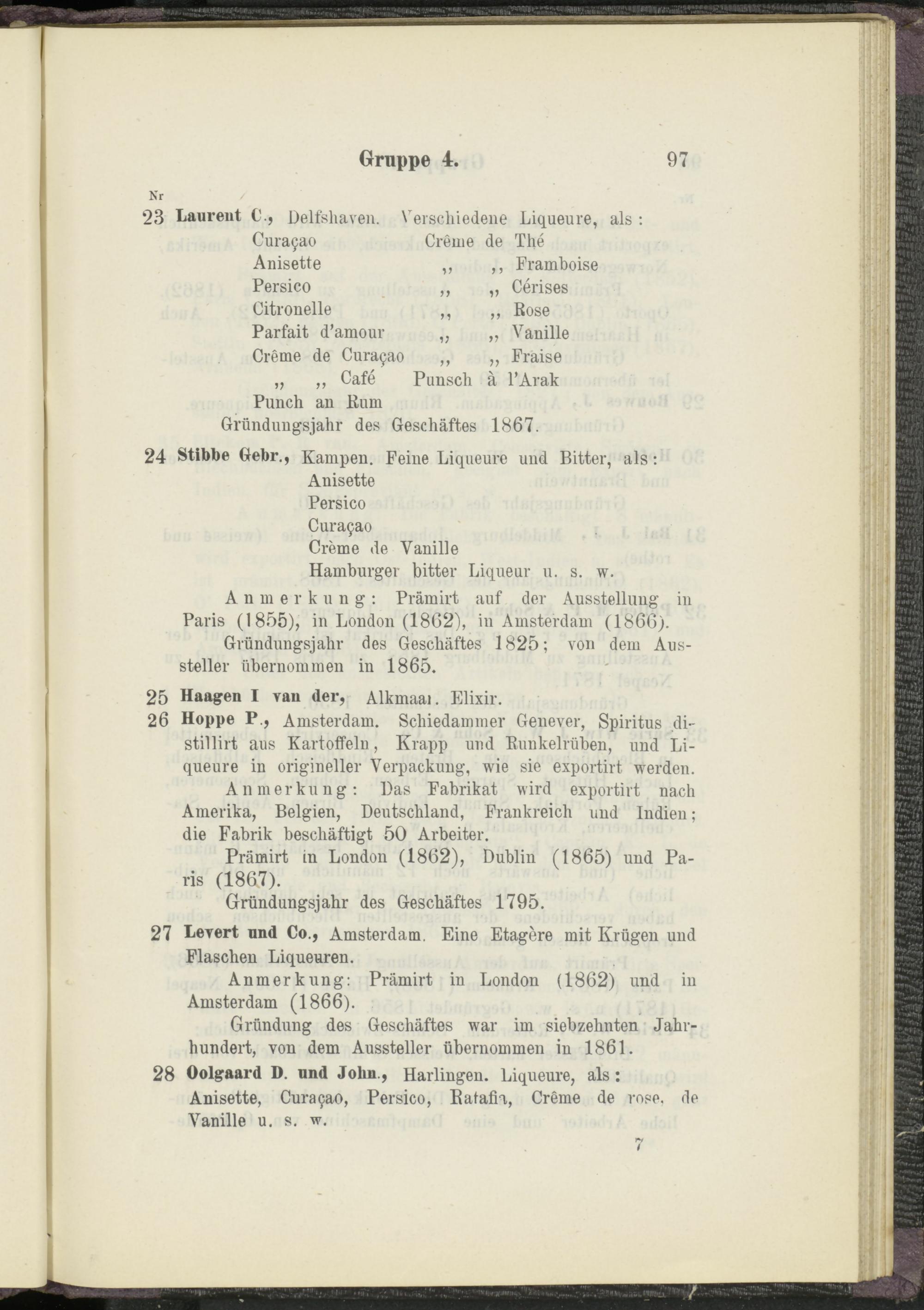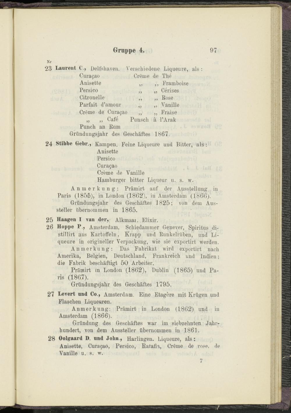 Hamburger bitter Liqueur u. s. w. Anmerkung: Prämirt auf der Ausstellung in Paris (1855), in London (1862), in Amsterdam (1866).
