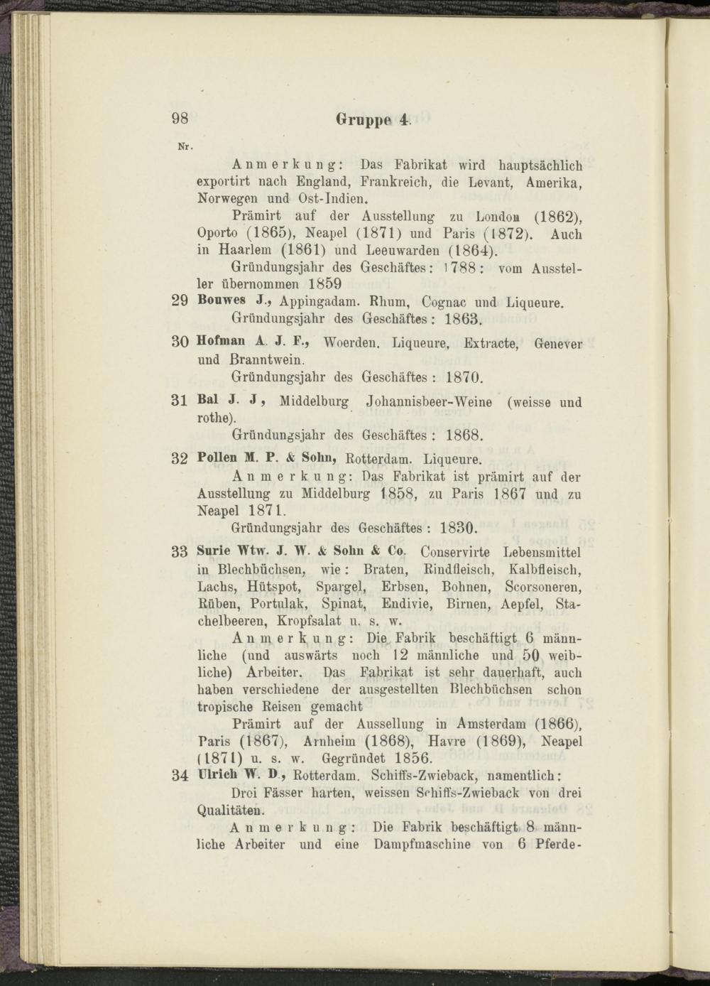 Anmerkung: Das Fabrikat ist prämirt auf der Ausstellung zu Middelburg 1858, zu Paris 1867 und zu Neapel 1871.