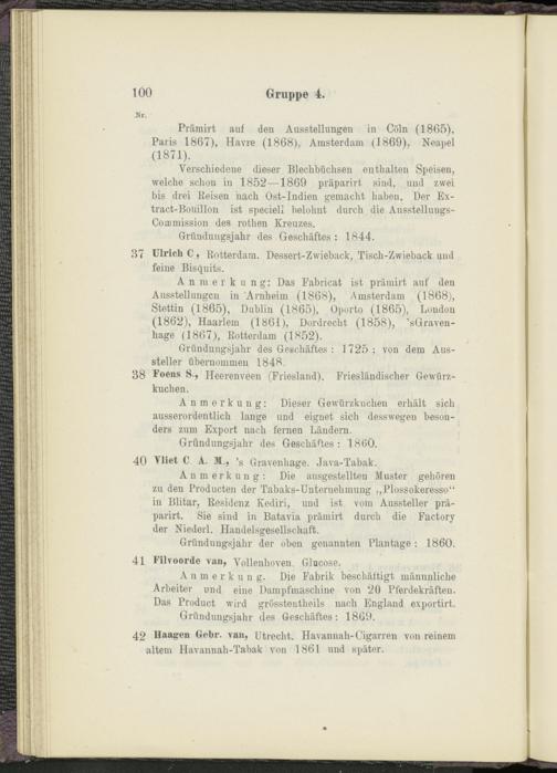 Anmerkung: Das Fabricat ist prämirt auf den Ausstellungen in ‘Arnheim (1868), Amsterdam (1868), Stettin (1865), Dublin (1865), Oporto (1865), London (1862), Haarlem (1861), Dordrecht (1858), ’sGraven- hage (1867), Rotterdam (1852).