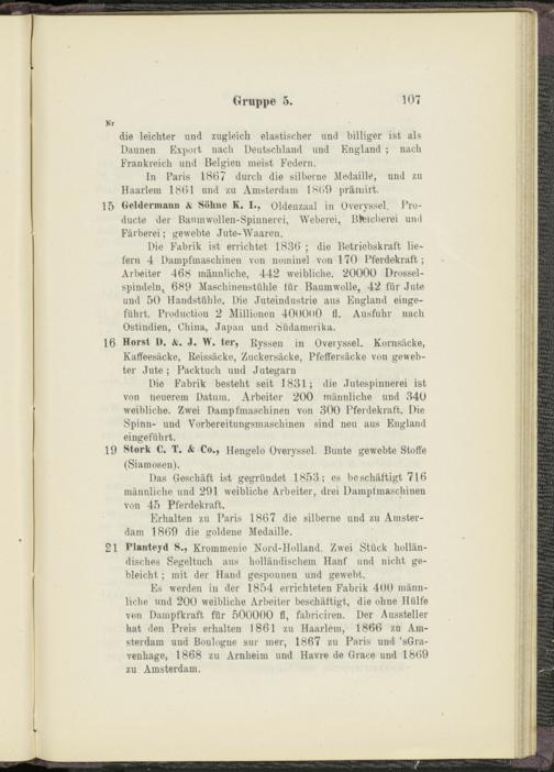 15 Gelderniann A Söhne K. I., Oldeuzaal in Overyssel, Pro- ducte der Baumwollen-Spinnerei, Weberei, Bleicherei und Färberei; gewebte Jute-Waaren.