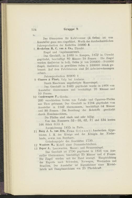 Das Geschäft, in 1860 in Kämpen, 1872 in Utrecht gegründet, beschäftigt 80 Männer 10 Frauen. Die Ziegel werden theilweise in holl. Oefen je von 700000—900000 Ziegel, theilweise in gewölbten Oefen ä 100000 Stück gebrannt. Auf dem Fabrikterrain sind 26 Arbeiterwohnungen erbaut.