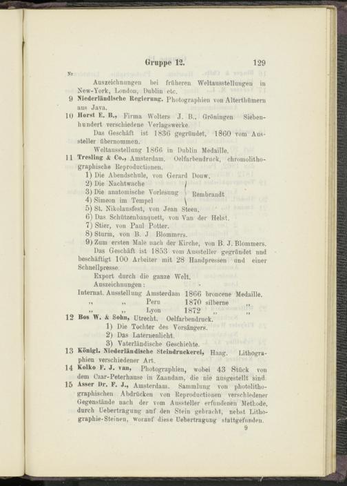 11 Tresling & Co., Amsterdam. Oelfarbendruck, chromolithographische Beproductionen.