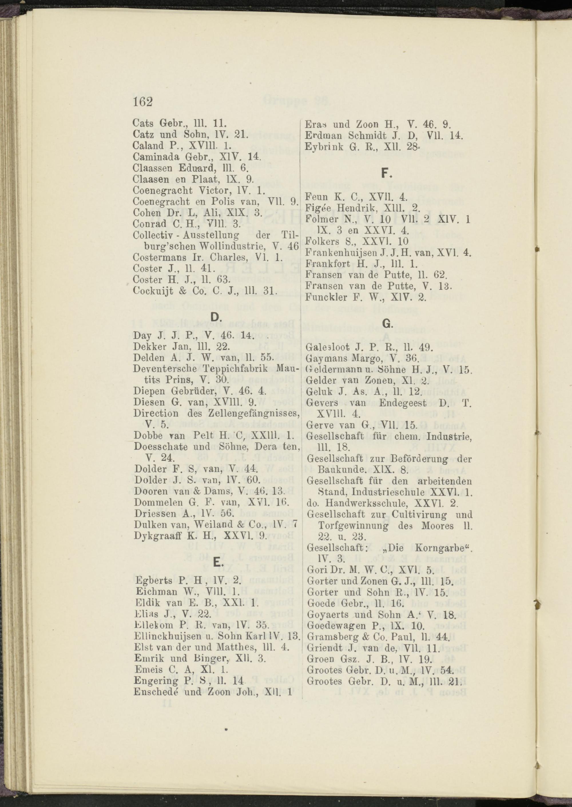 Galesloot J. P. R., 11. 49. Gaymans Margo, V. 36. Geldermann u. Söhne H. J., V. 15. Gelder van Zonen, XI. 2.